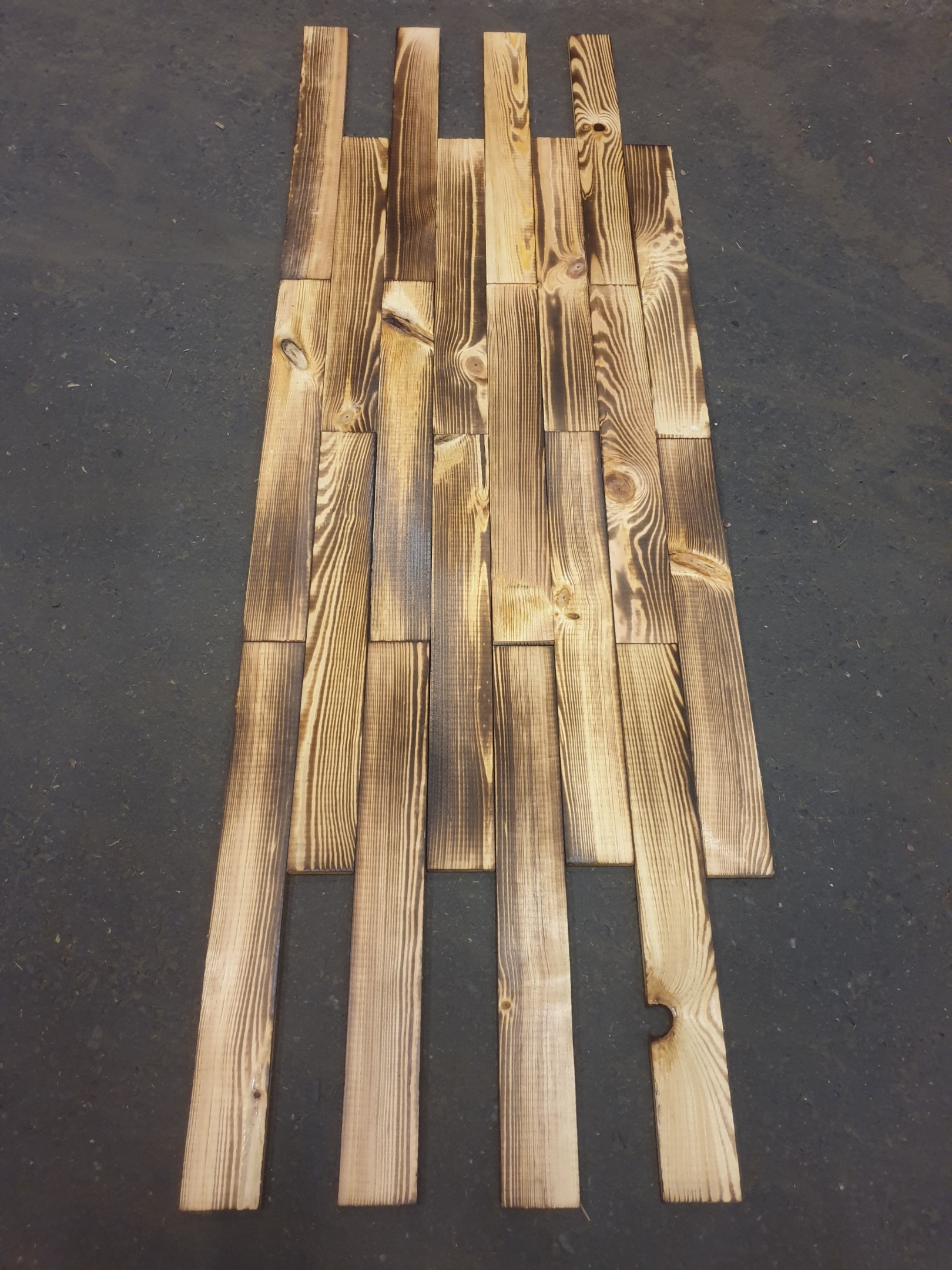 20 Stück neue geflammte Holzbretter aus Nadelholz