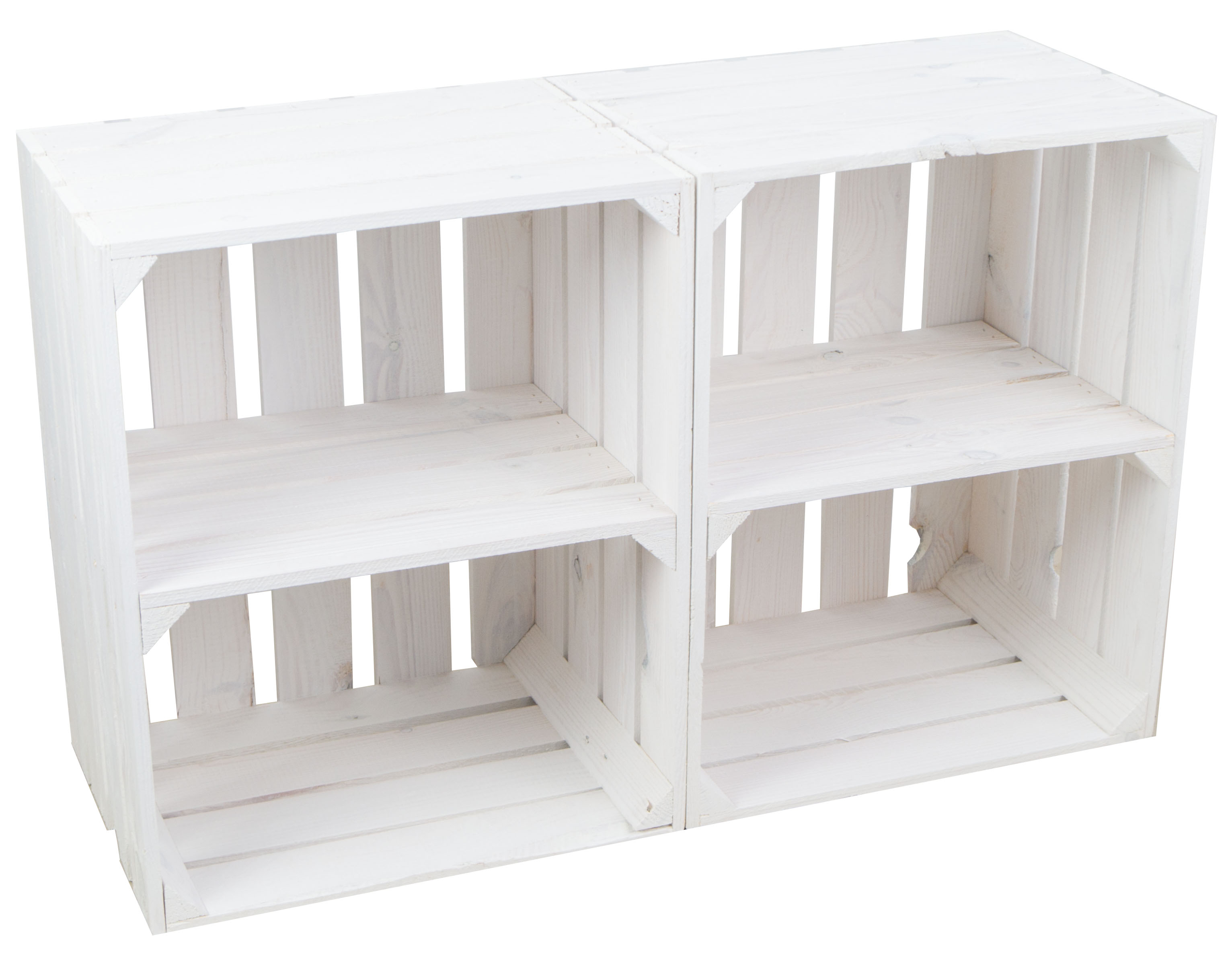 Die Obstkiste Johanna gehört zu unseren absoluten Klassikern, hier bieten wir unser 2er set in weiss mit einem Zwischenbrett
