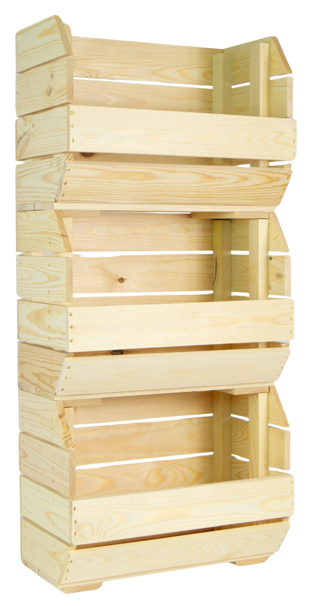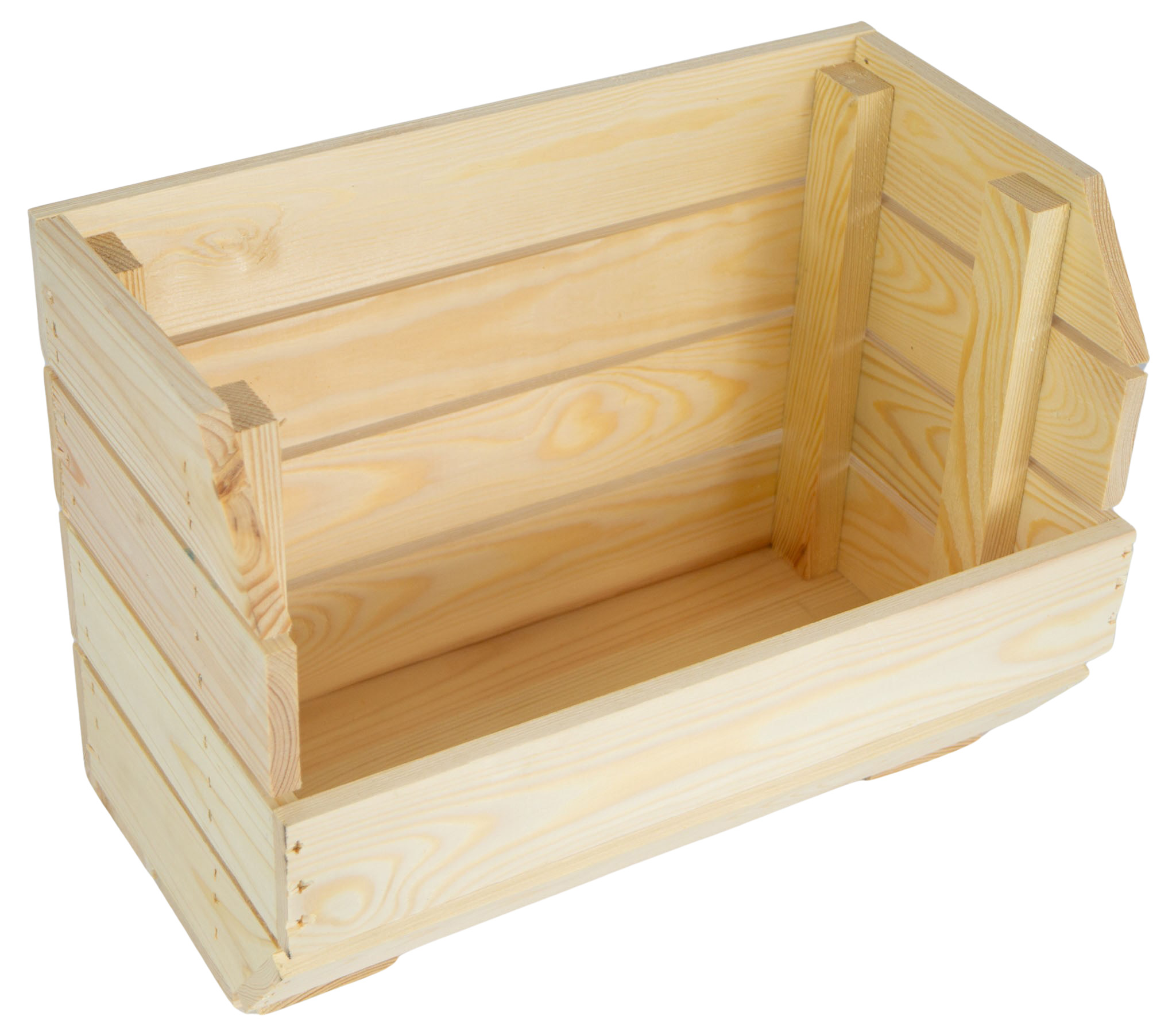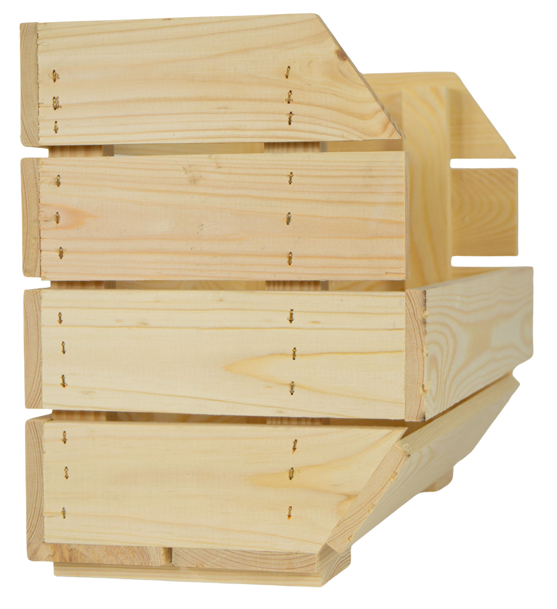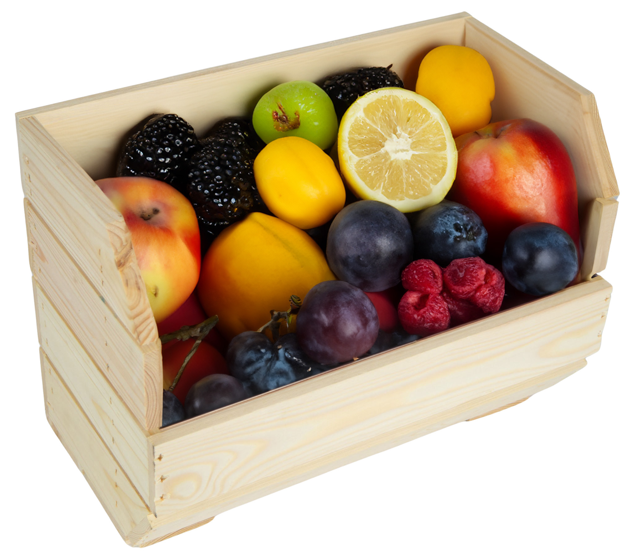 An einer Seite ist die Kiste mit einer leicht geneigten Öffnung versehen - dies ermöglicht eine flexible Entnahme der Früchte.