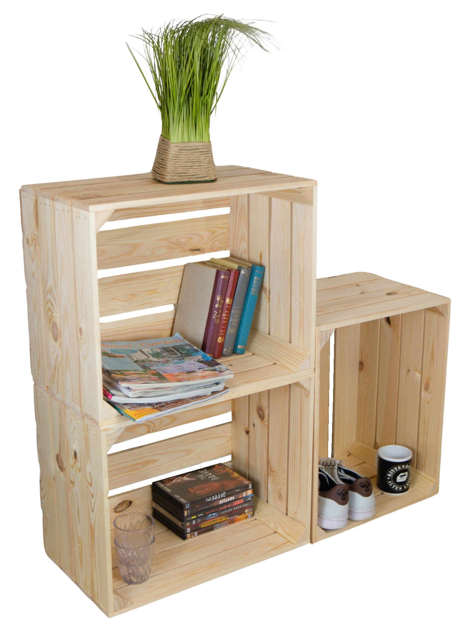 Die neuen Holzkisten sind ideal zum Möbelbau, zum Regalbau. Ihren Ideen sind keine Grenzen gesetzt.