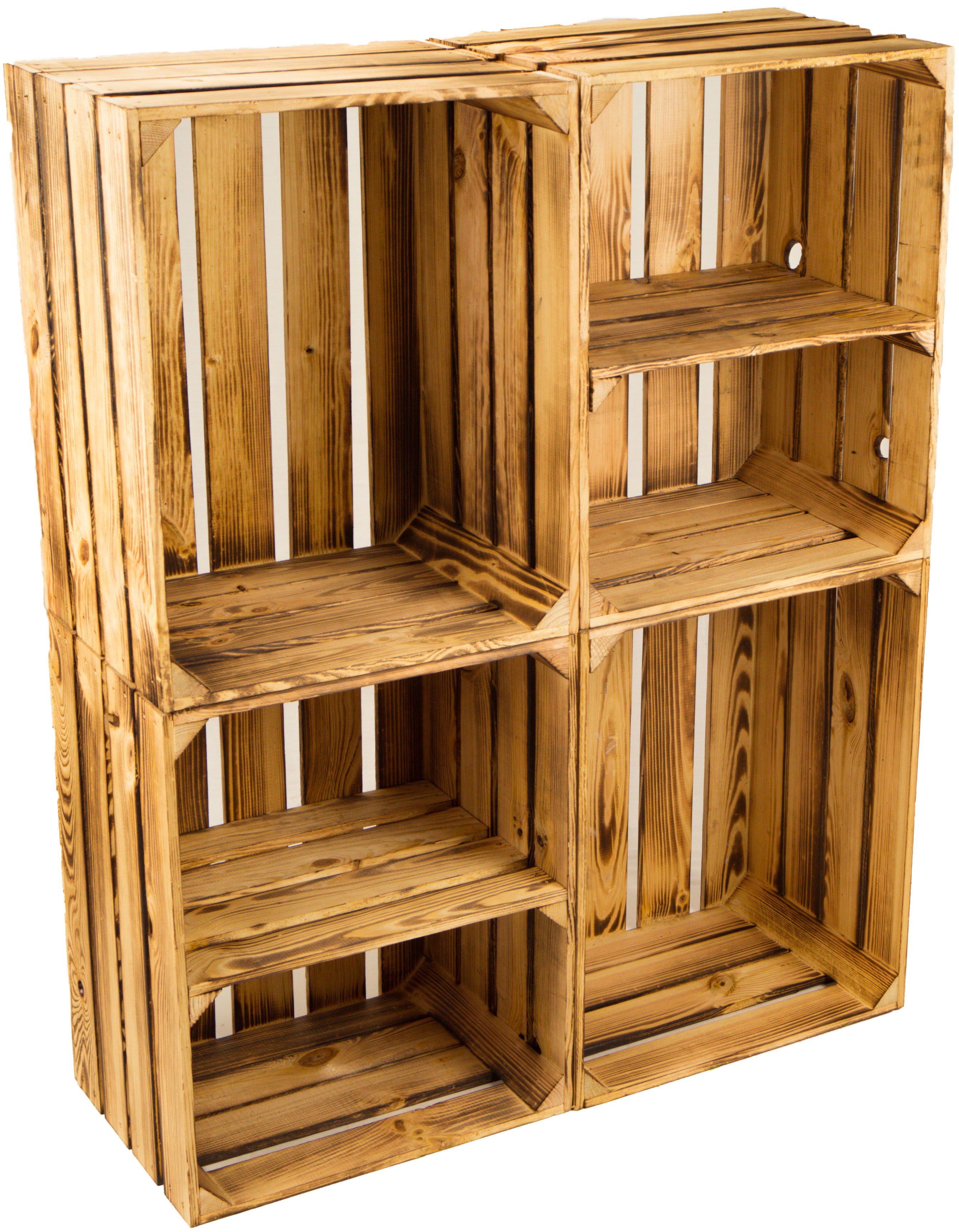 Diese massiven Apfelkisten sind neu & gehobelt und wurden mit einem Brenner "flambiert" und haben deshalb eine ungewöhnliche, aber sehr schöne Struktur!