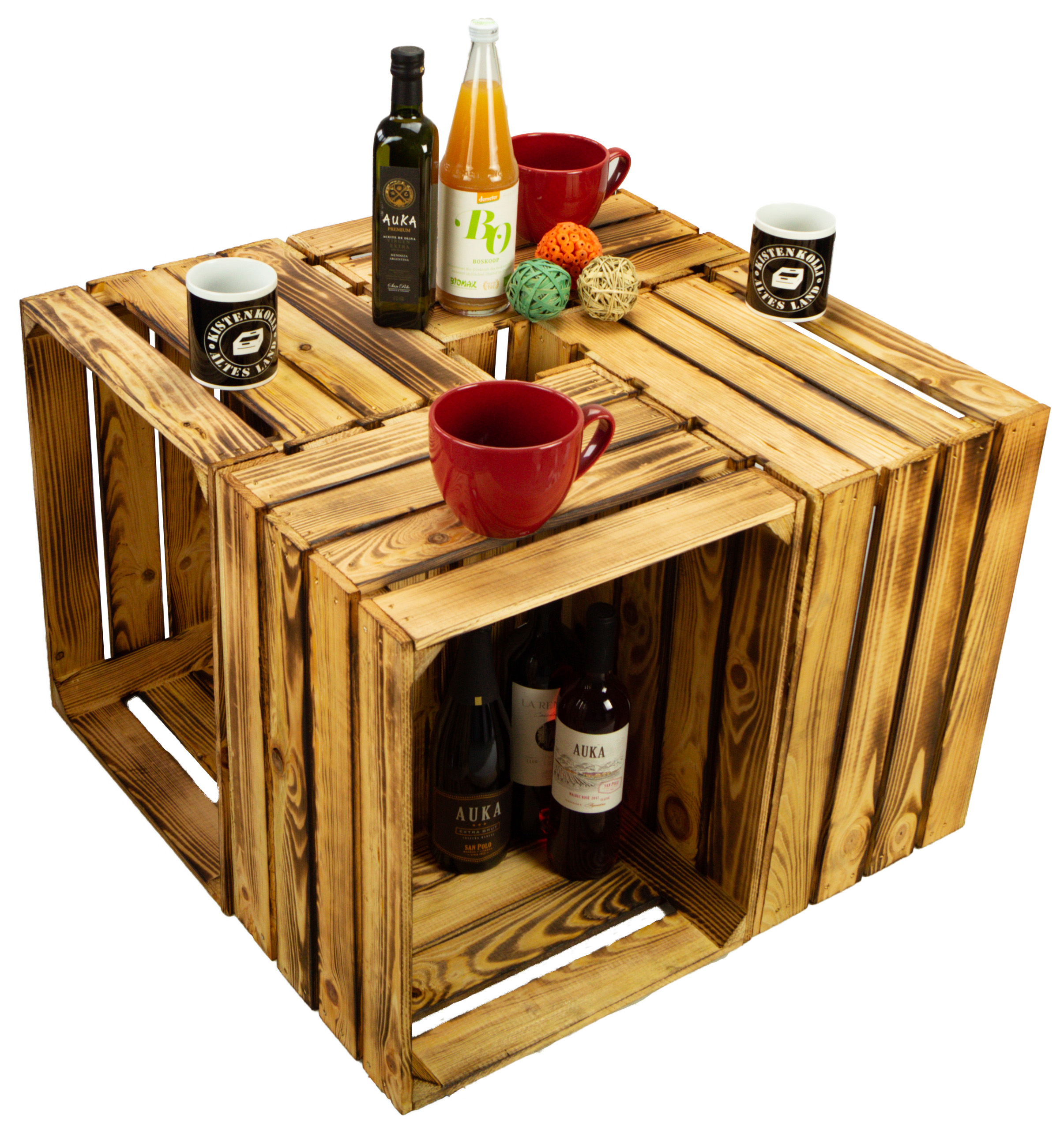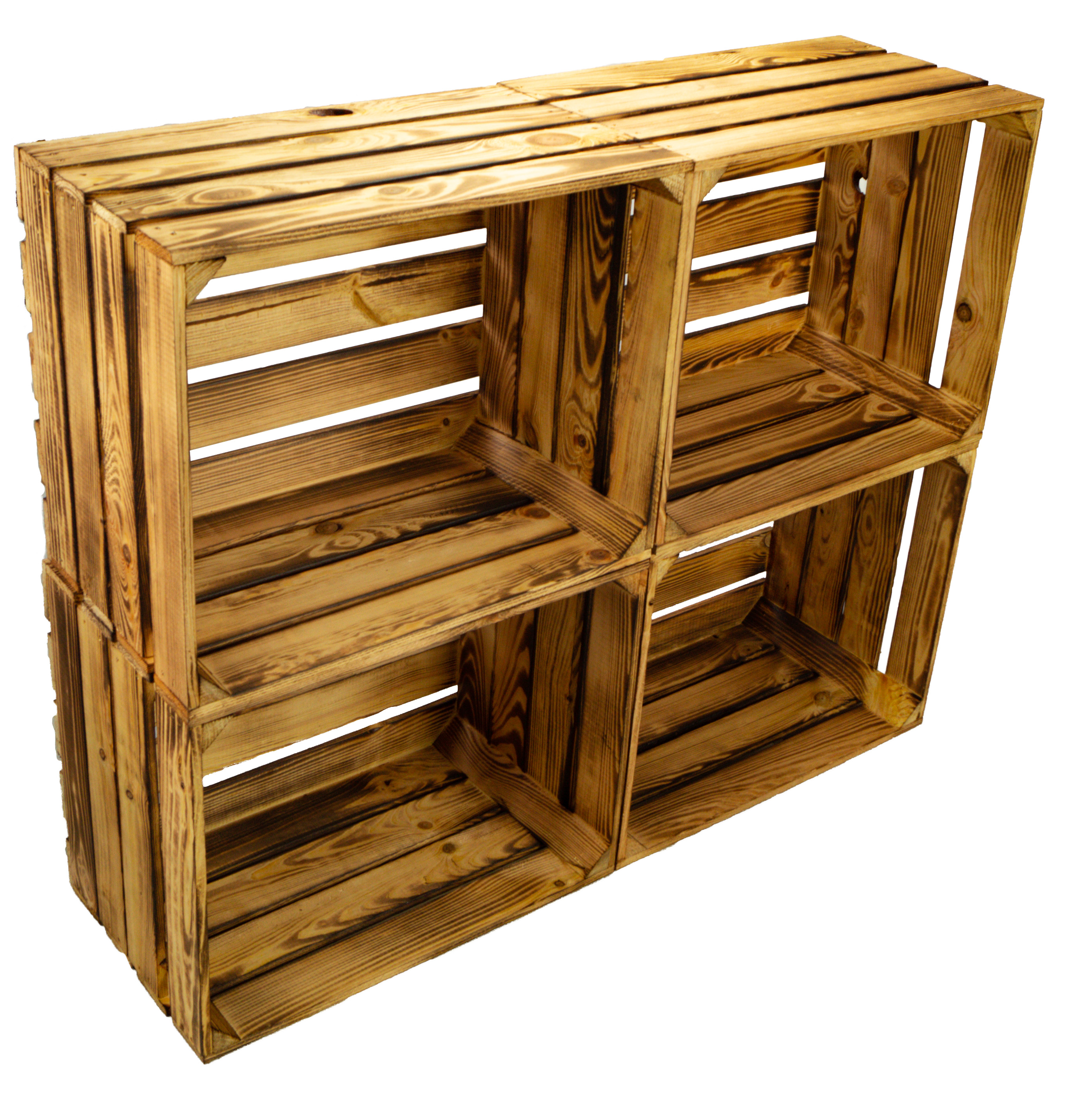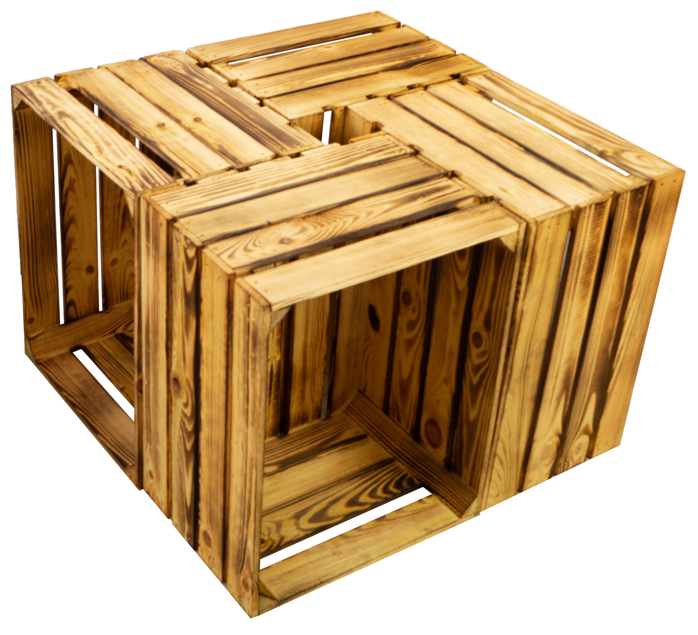 Diese massiven Apfelkisten sind NEU & GEHOBELT und wurden mit einem Brenner "flambiert" und haben deshalb eine ungewöhnliche, aber sehr schöne Struktur!