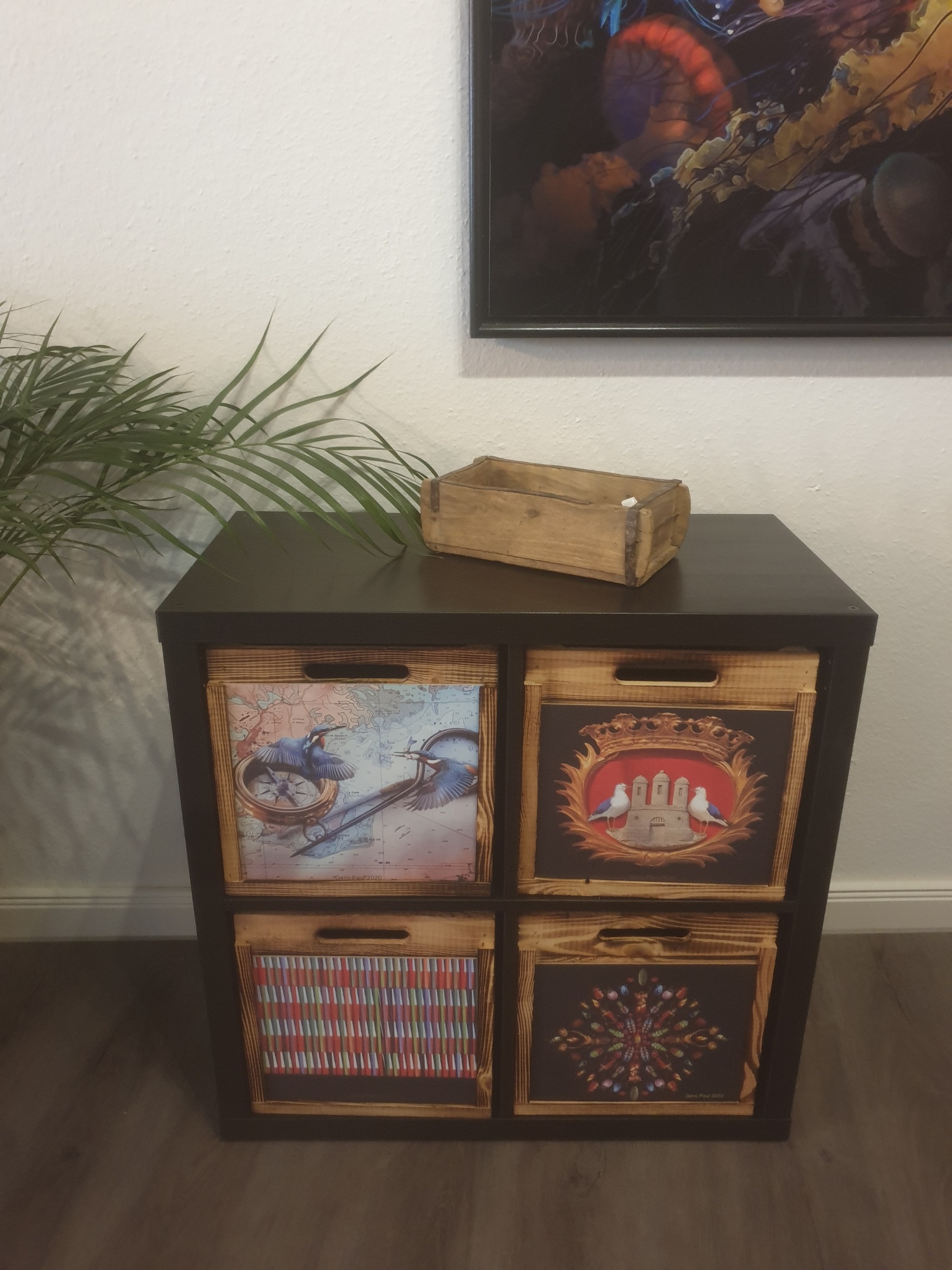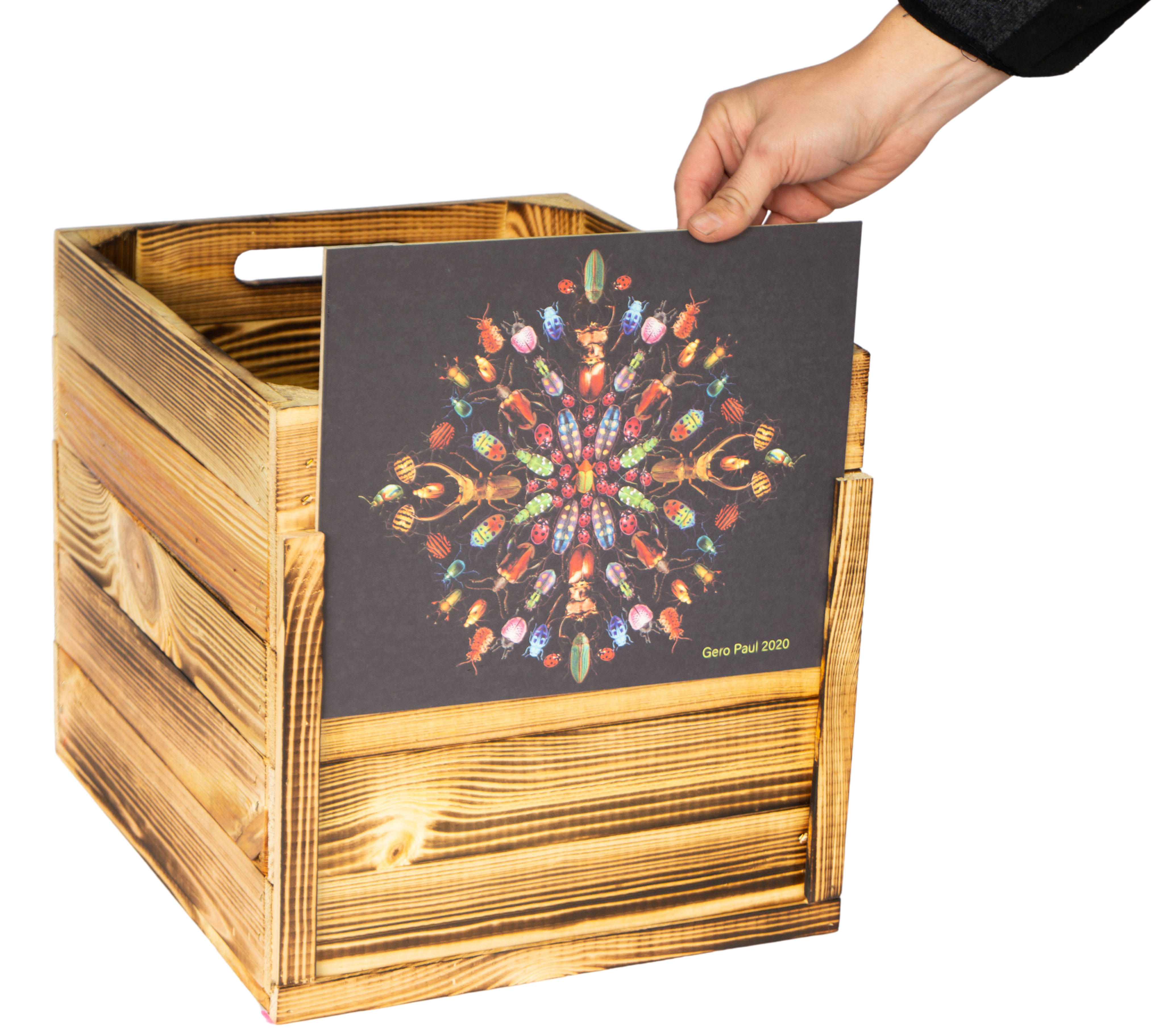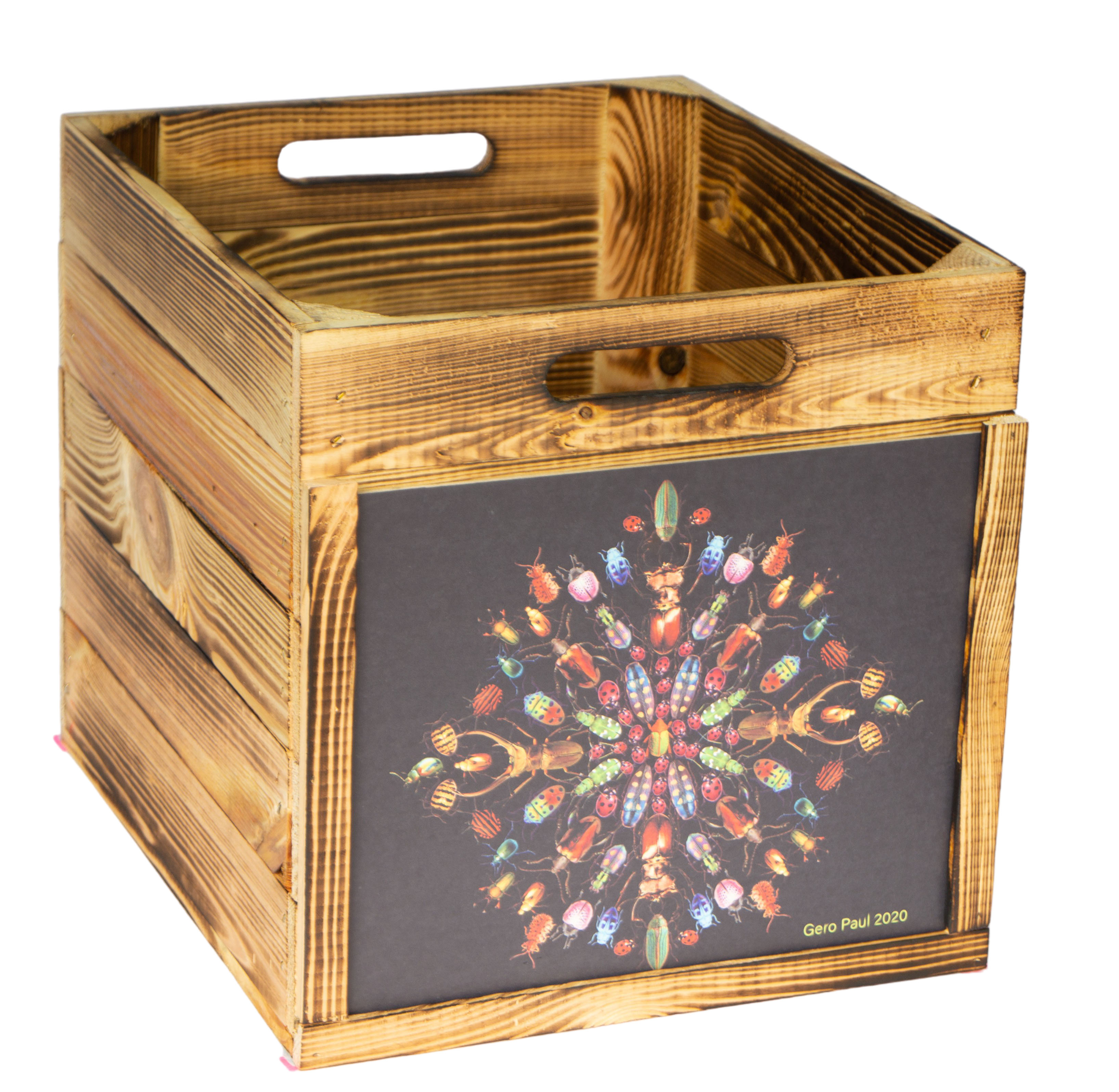 Holzkiste geflammt passend für Kallax und Expeditregale Bild Beetles Parade