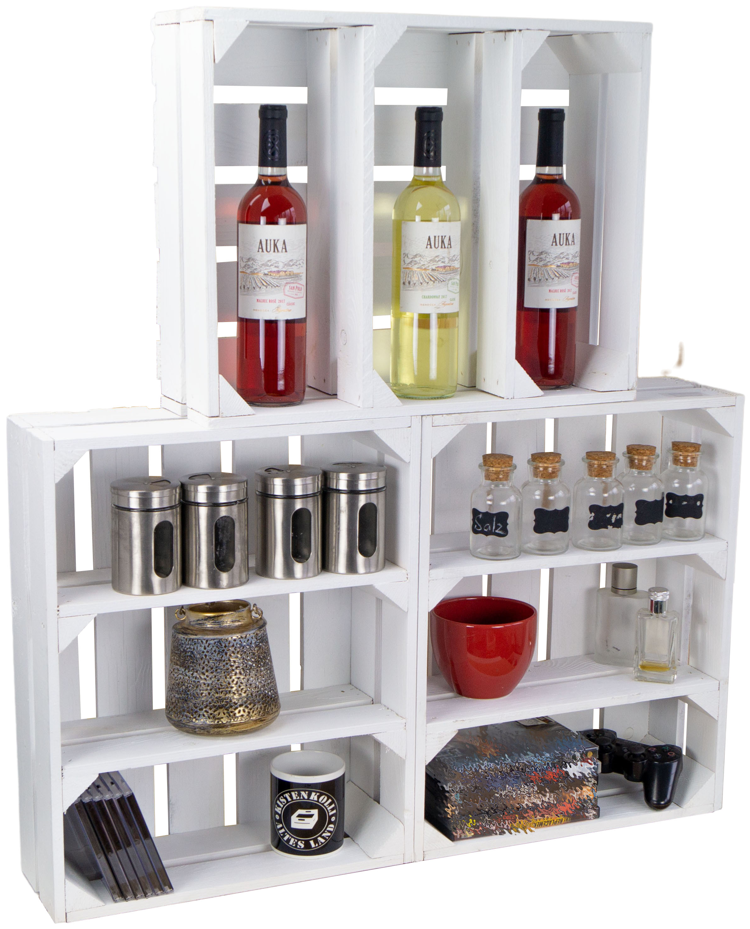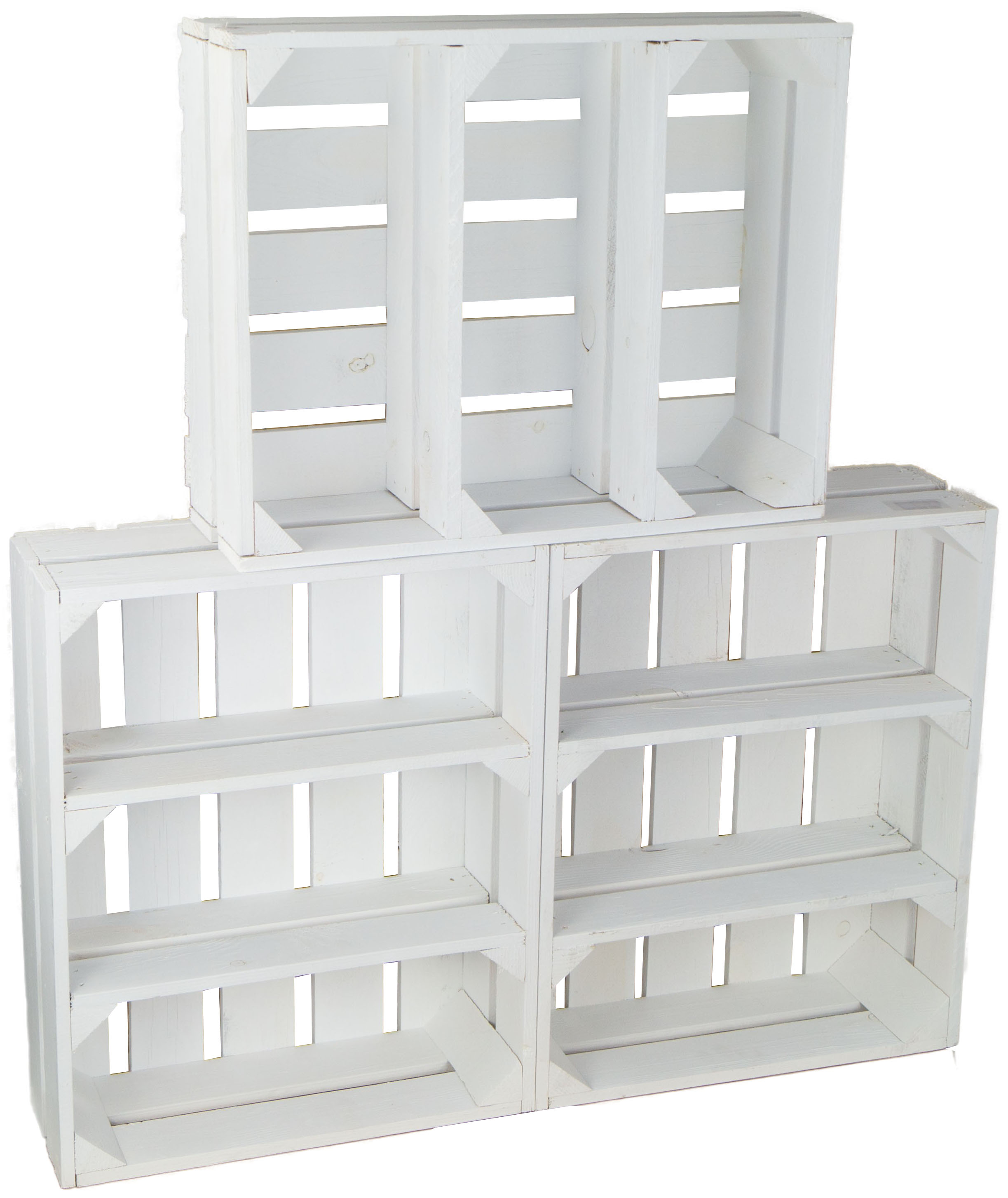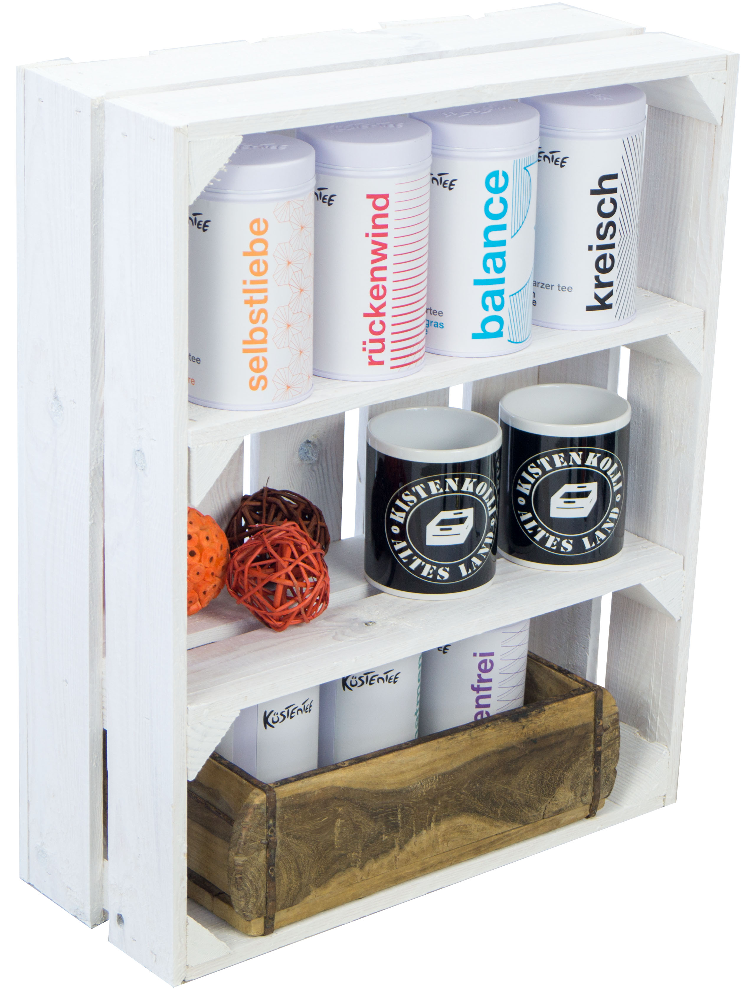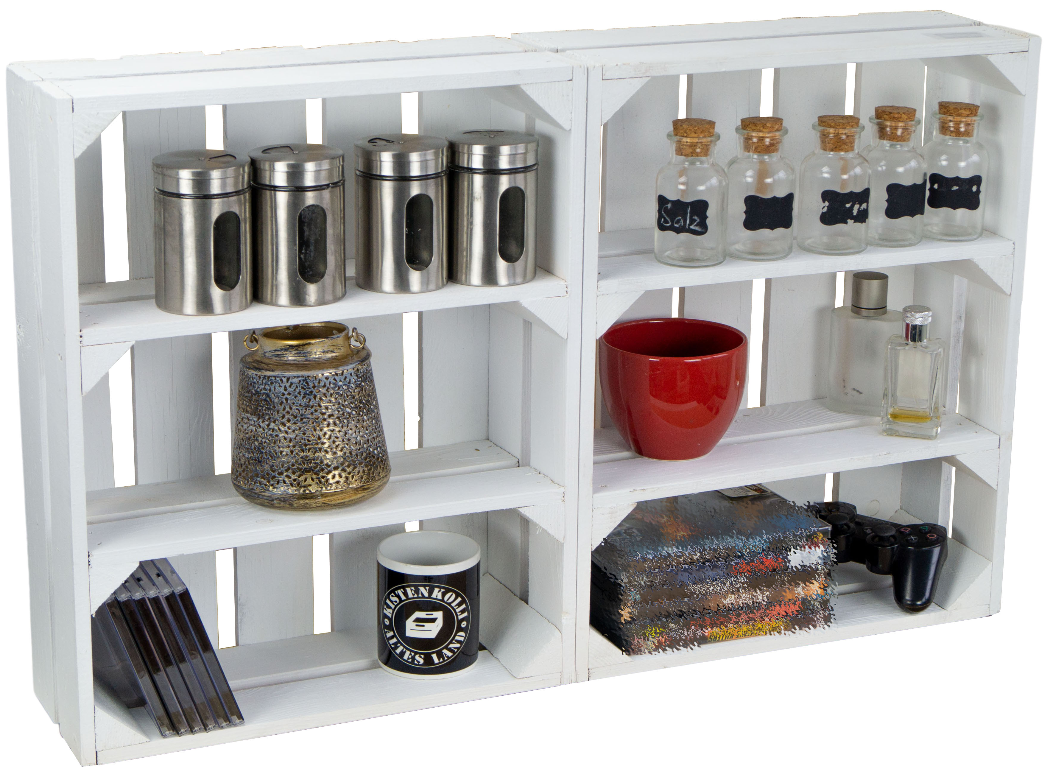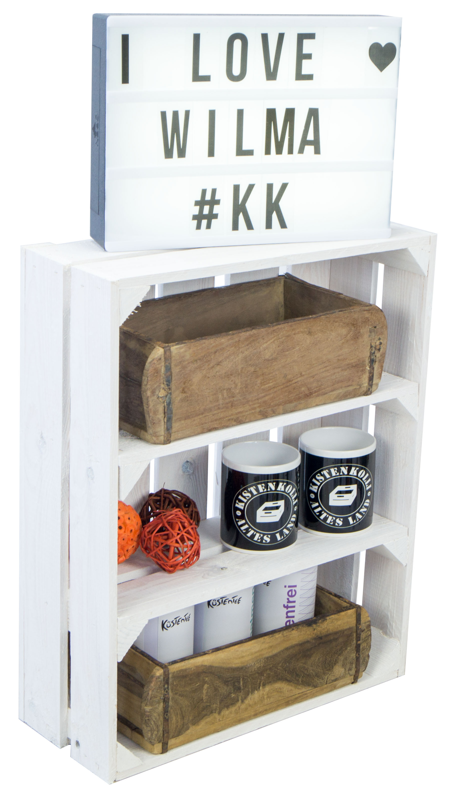 Schöne weiße Obstkiste "Wilma" mit zwei Einlegeböden.
