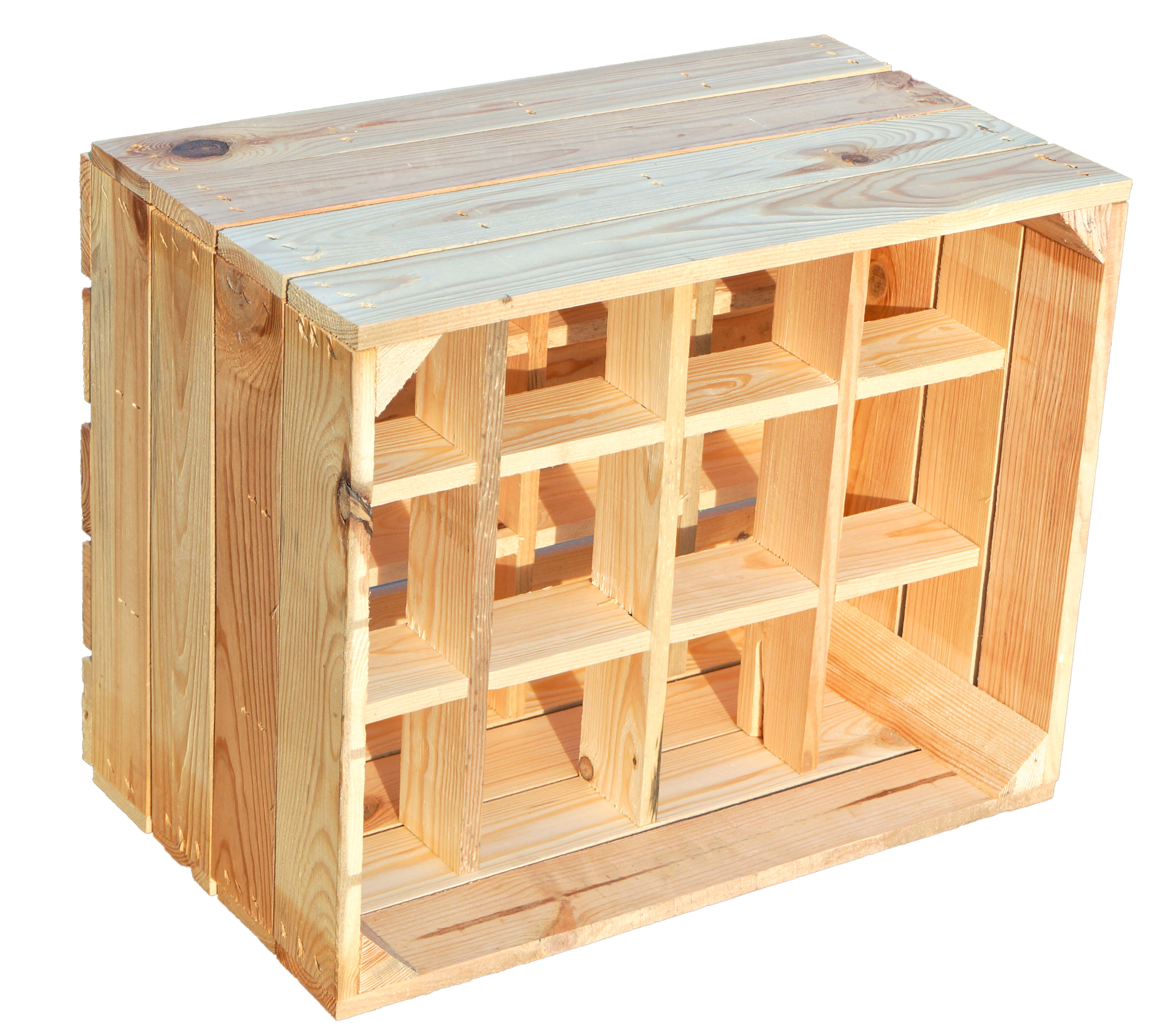 In meine vorhandenen Wein-Regale haben bauchige Sekt-Flaschen nicht gepasst - also habe ich sie mit einigen dieser "Kisten" kombiniert. Sieht super aus, ist absolut den Preis wert und ich konnte meine Idee super schnell verwirklichen - vielen Dank.