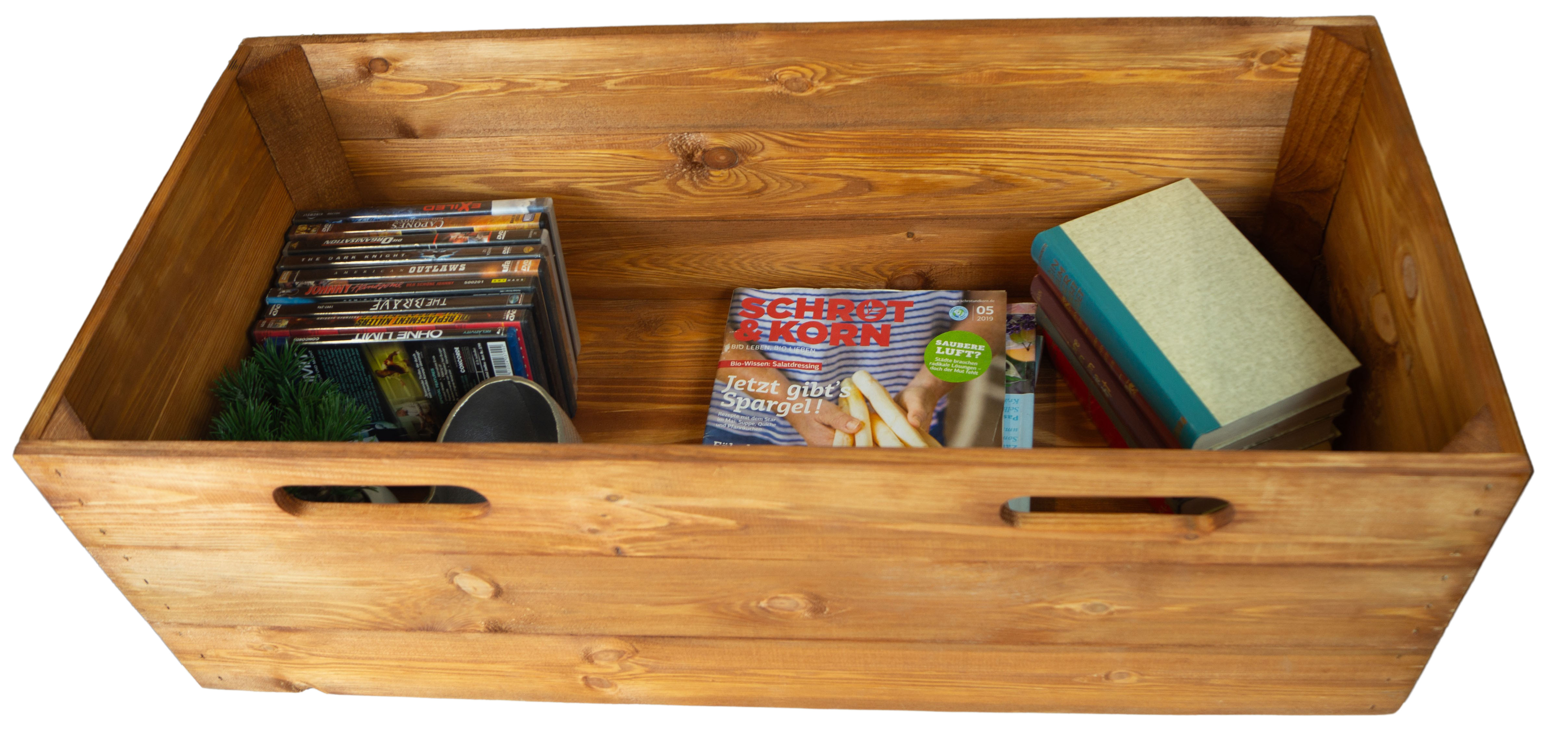 Diese Holzkisten sind ein absolutes Naturprodukt, Astlöcher oder ähnliche kleinere Verwachsungen können vorkommen und sind normal, es sind und bleiben eher rustikale gehobelte (nicht geschliffen) Holzkisten, die kein perfektem Furniermöbelstück ähneln. Jede Kiste ist ein absolutes Unikat