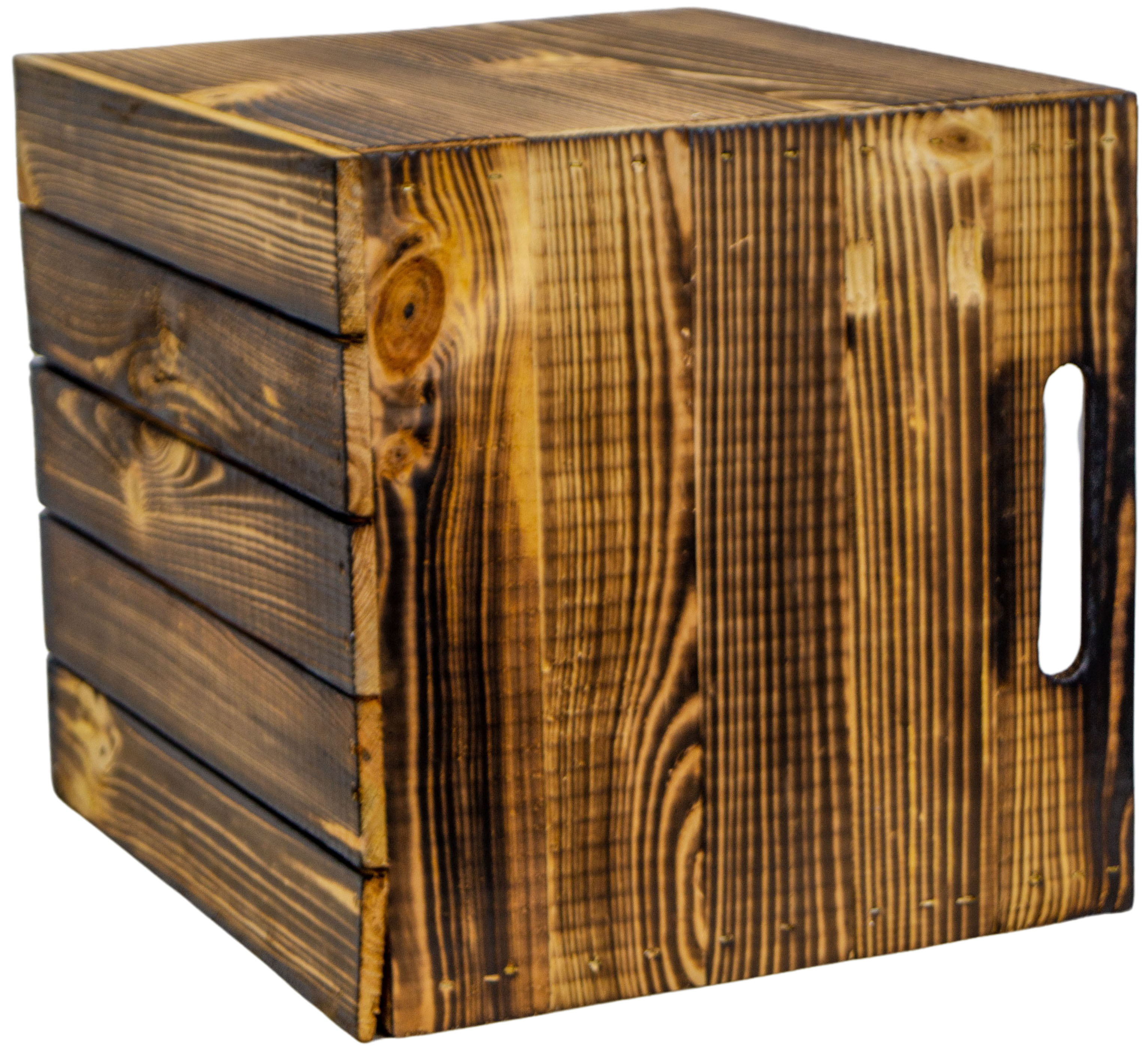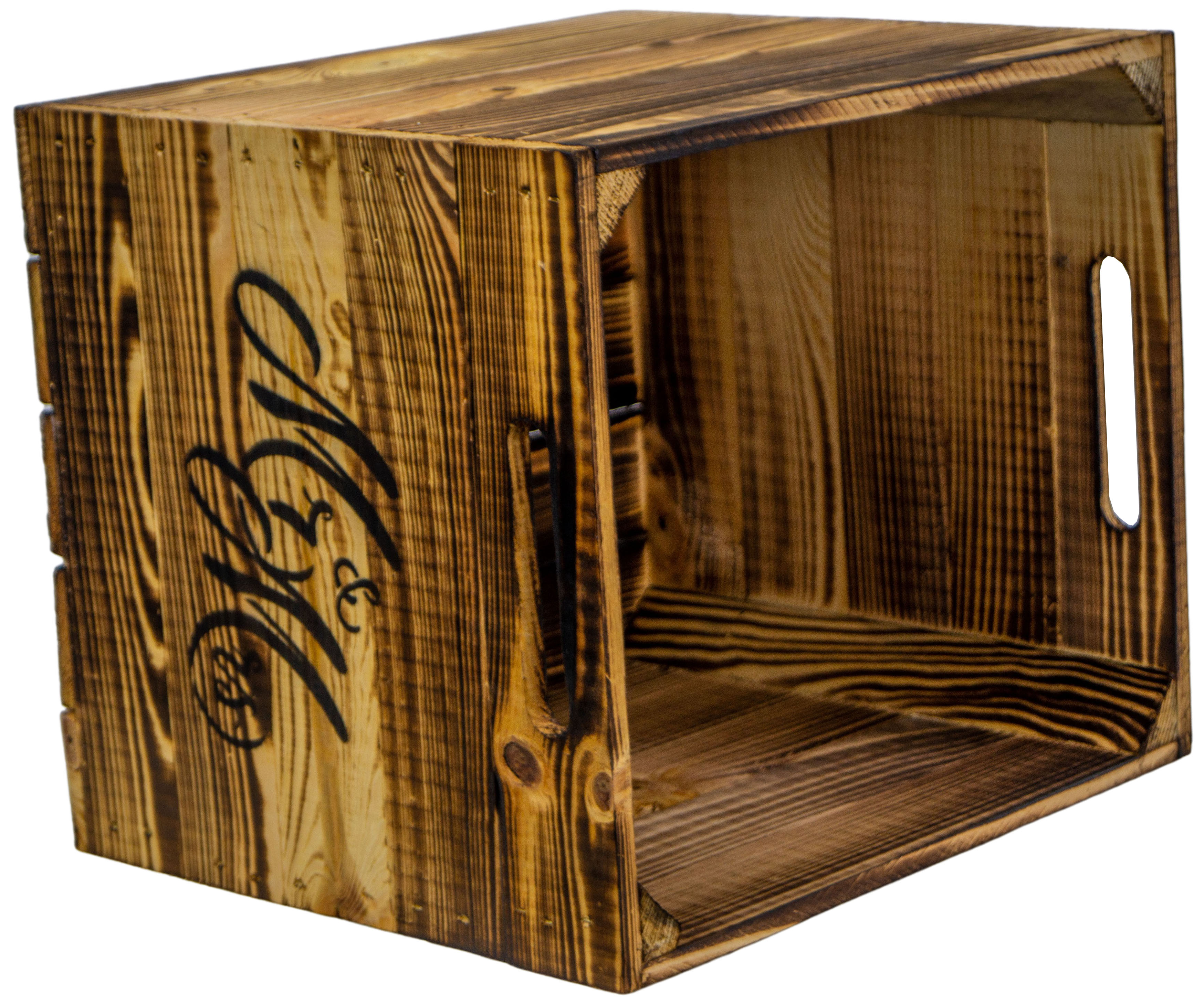 ACHTUNG: Die geflammte Kiste hat leichte Russrückstände, sollte demnach vor gebrauch mit einem feuchten Lappen gereinigt werden.