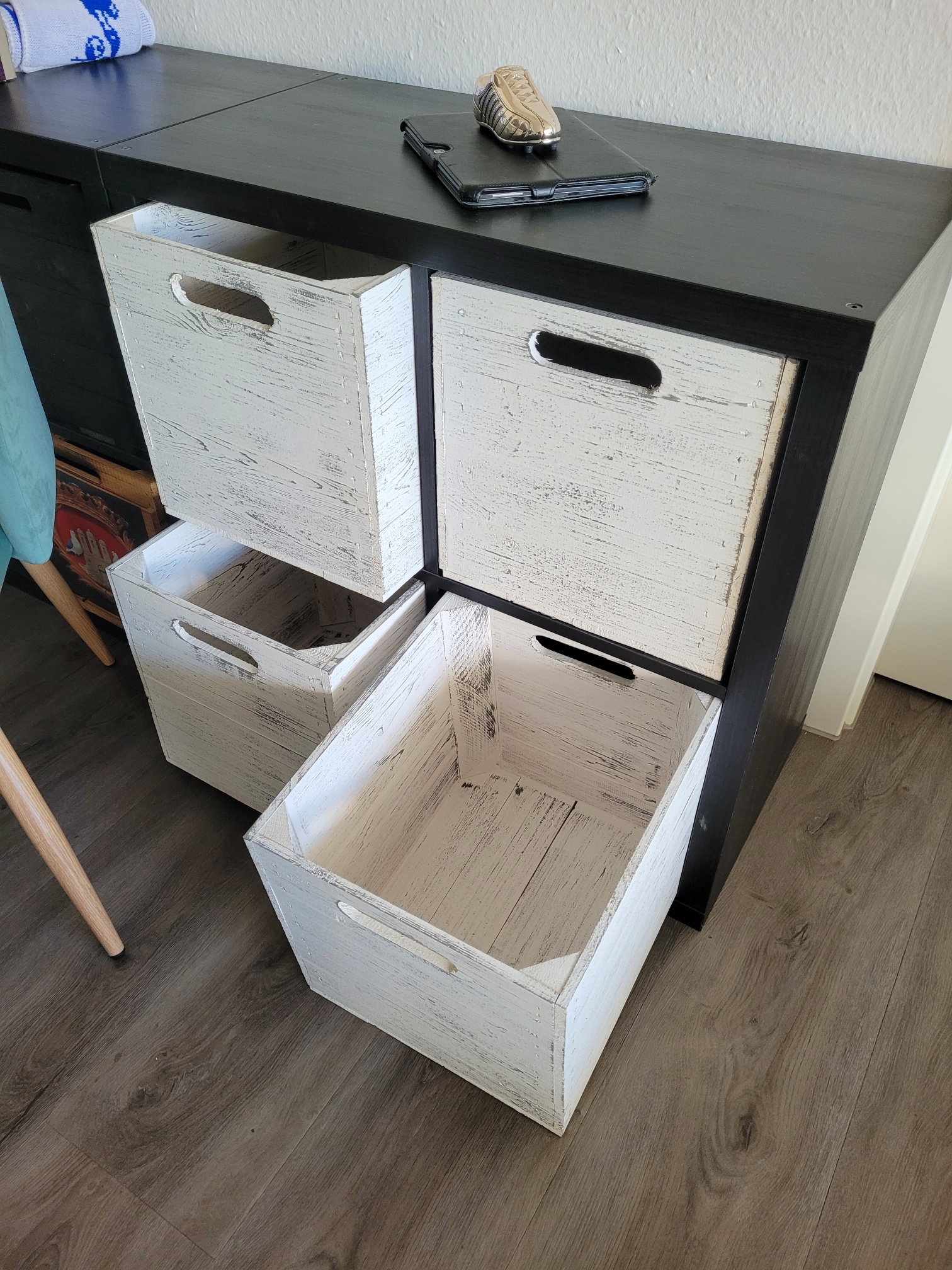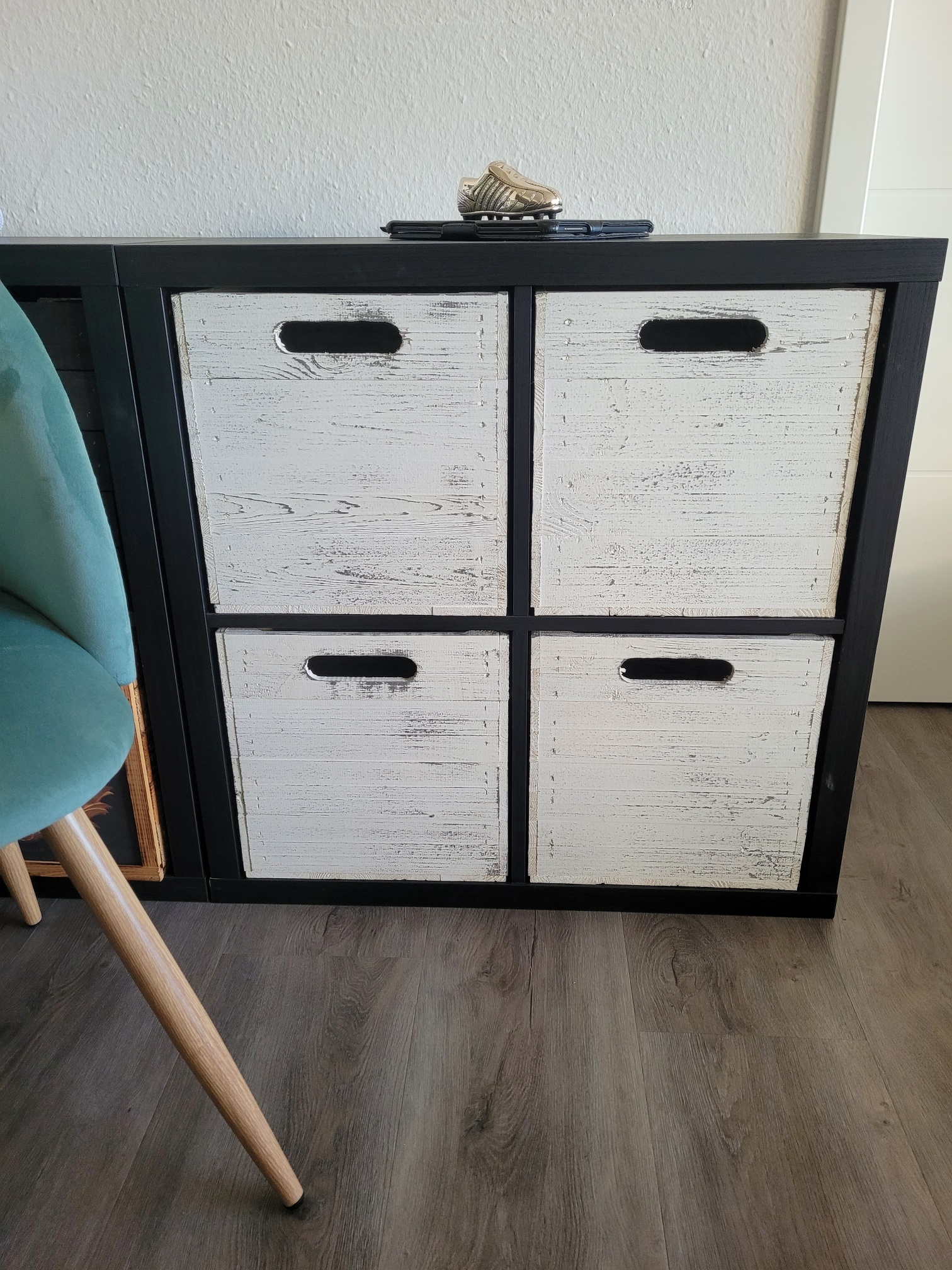 Holzkiste Shabby weiß passend für Kallax und Expeditregale Regaleinsatz