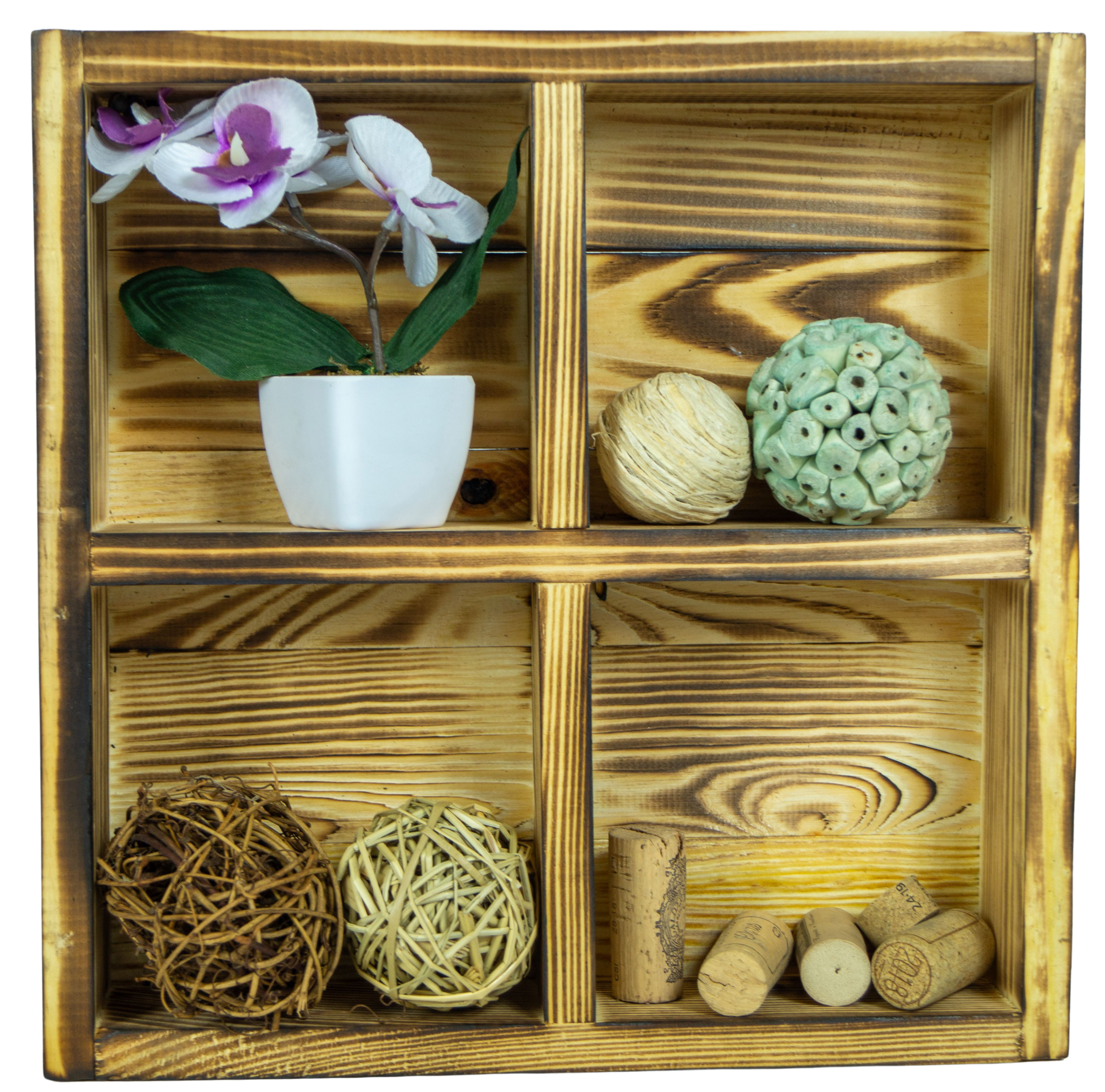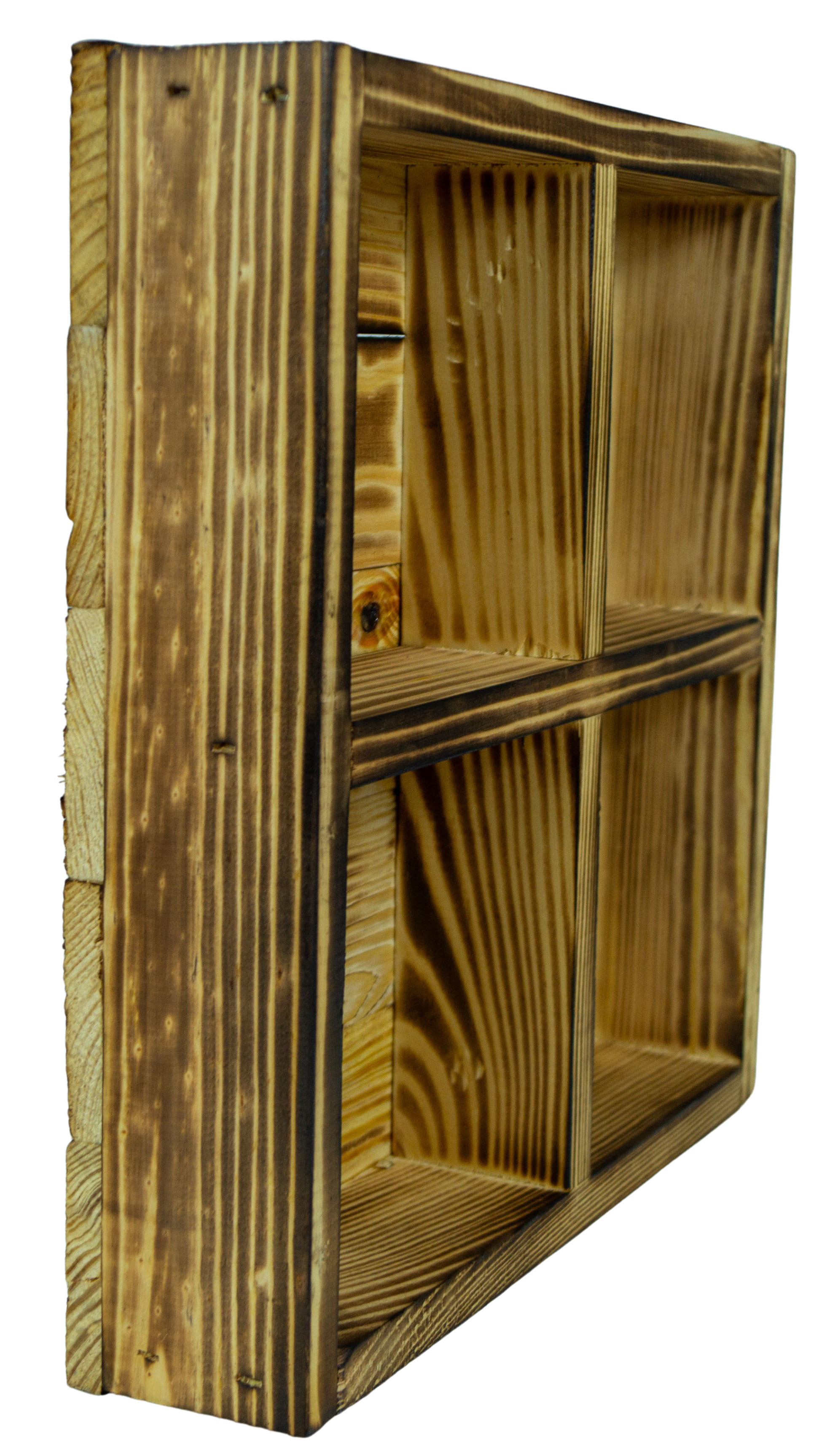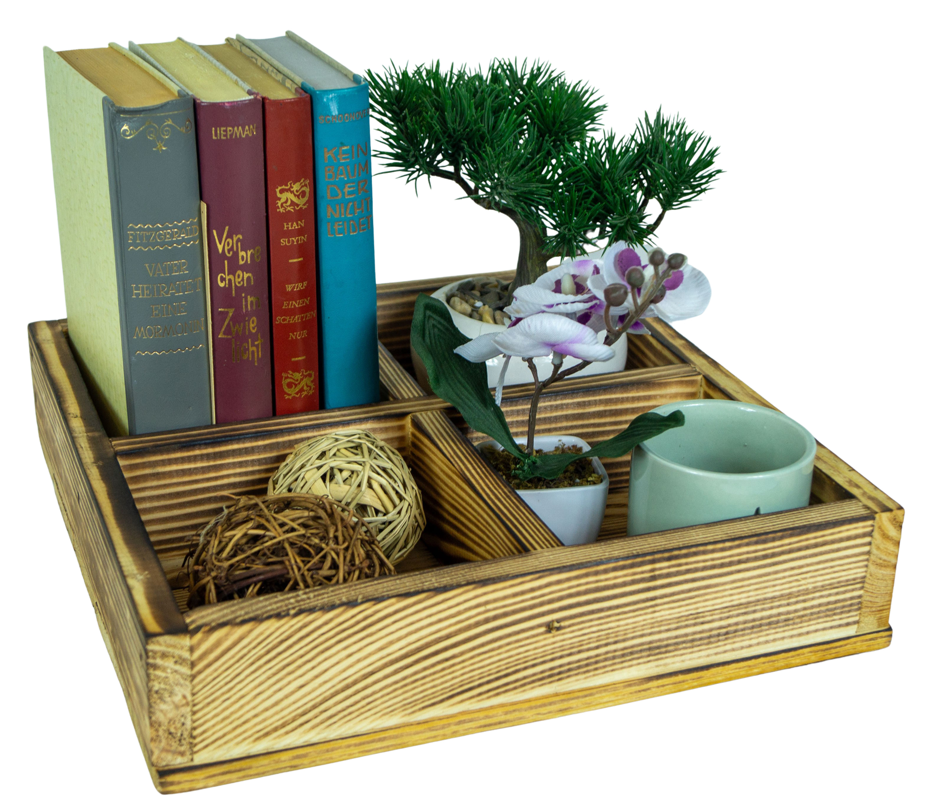Kleine Holzkiste Alma mit 4 Fächern in geflammt