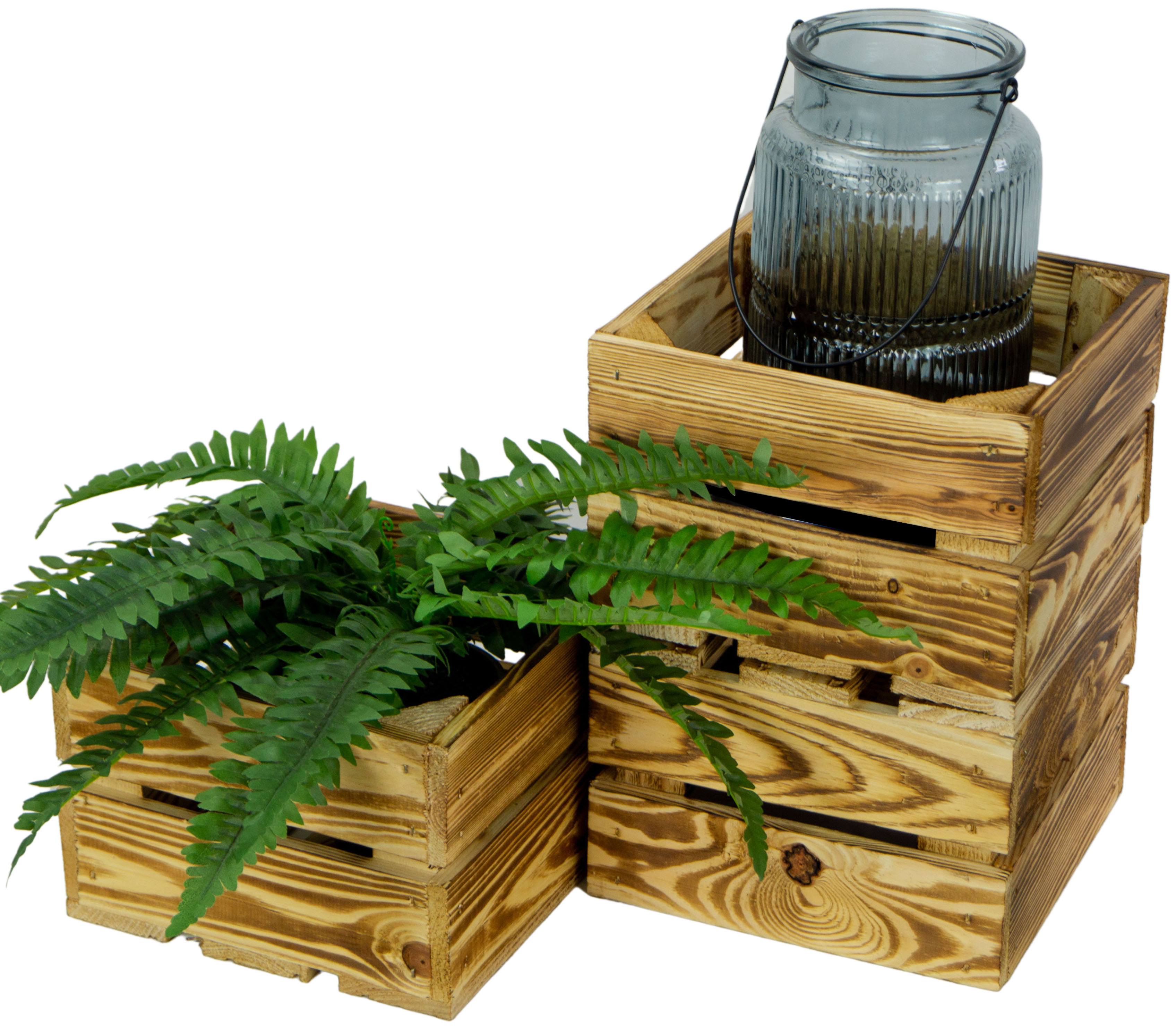 Diese massiven kleinen Kisten sind NEU und wurden mit einem Brenner "flambiert" und haben deshalb eine ungewöhnliche, aber sehr schöne Struktur!