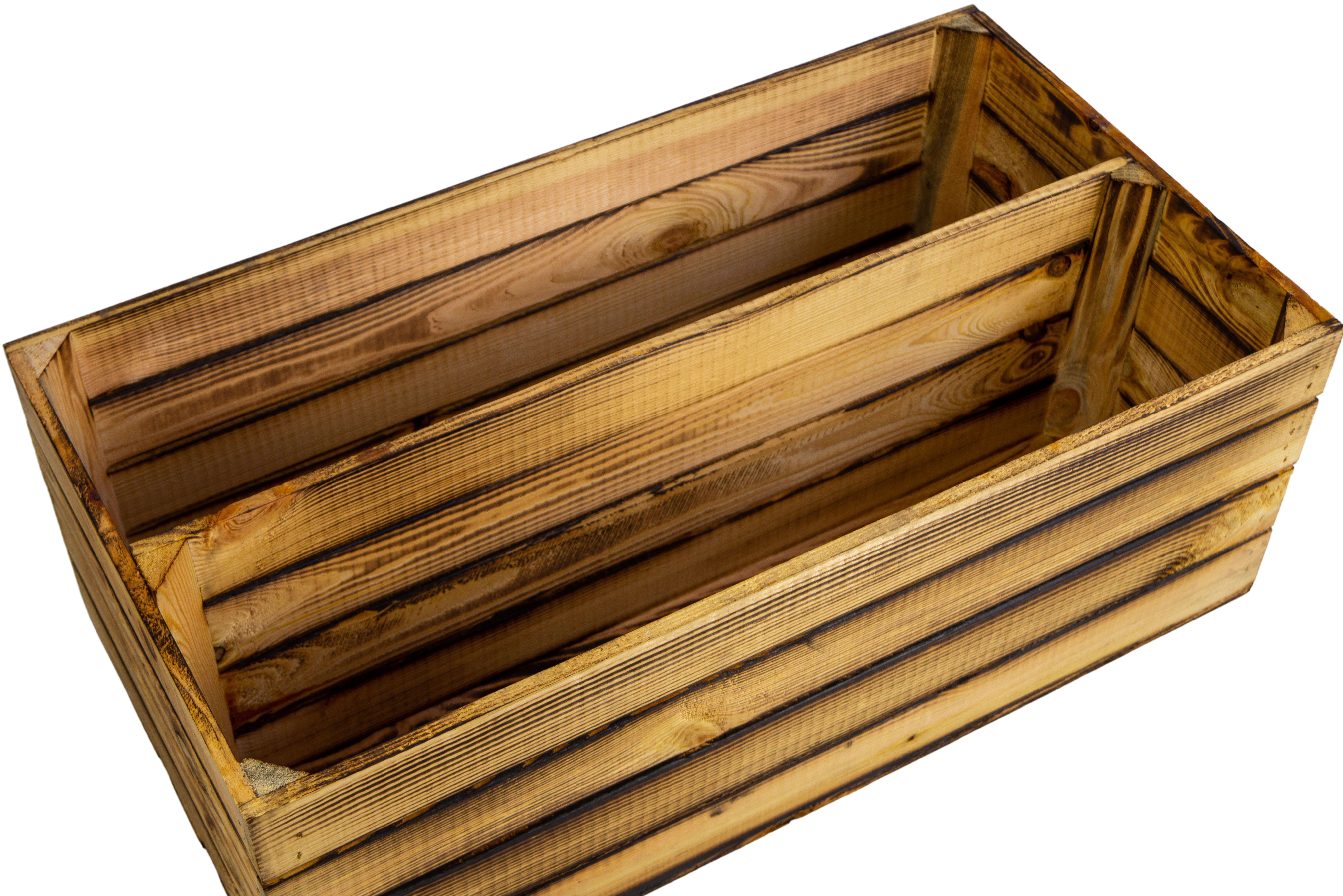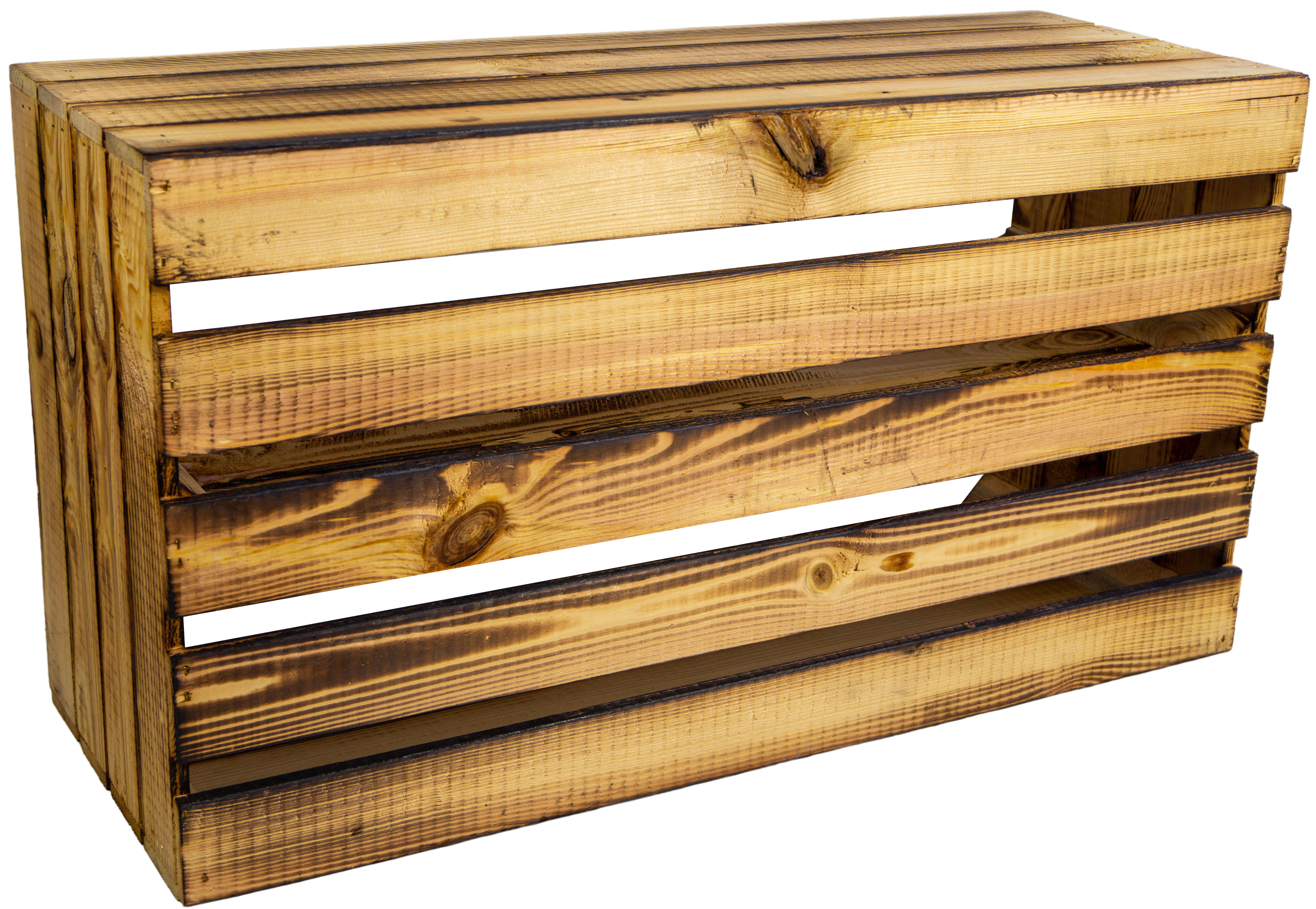 Schöne lange flambierte Obstkiste mit langer Einlage, eignet sich ideal für ein schönes Schuhregal.
