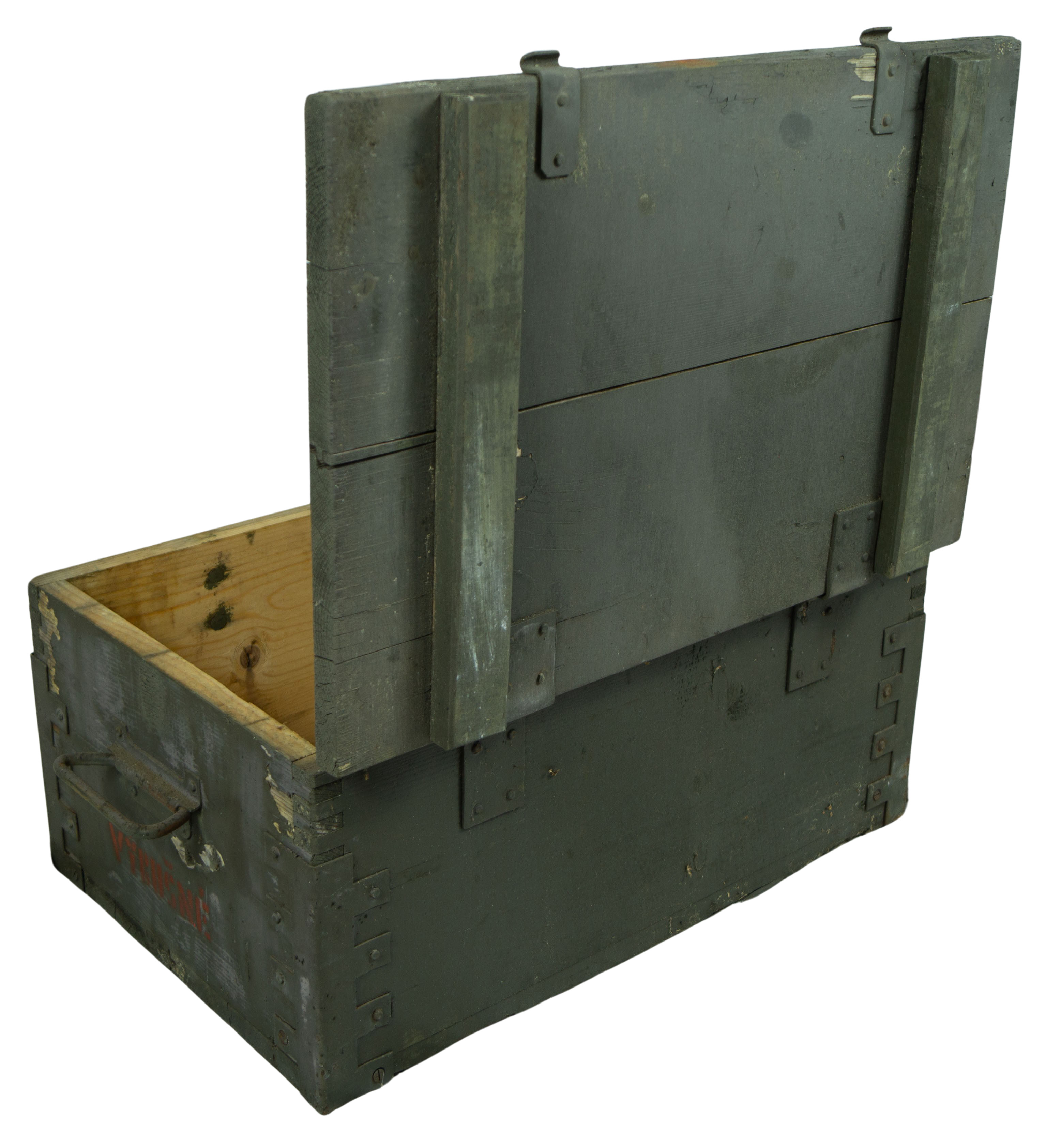 Diese ausrangierten Munitionskisten wurden lediglich zu Übungszwecken benutzt. Sie sind sehr robust und haben eine tollen Vintage Look. Diese Kisten sind für einen vielfachen Einsatzbereich zu verwenden, wie z.B einen Abstelltisch, einer miniBar, Hocker Aufbewahrungsbox, Schatztruhe und und und