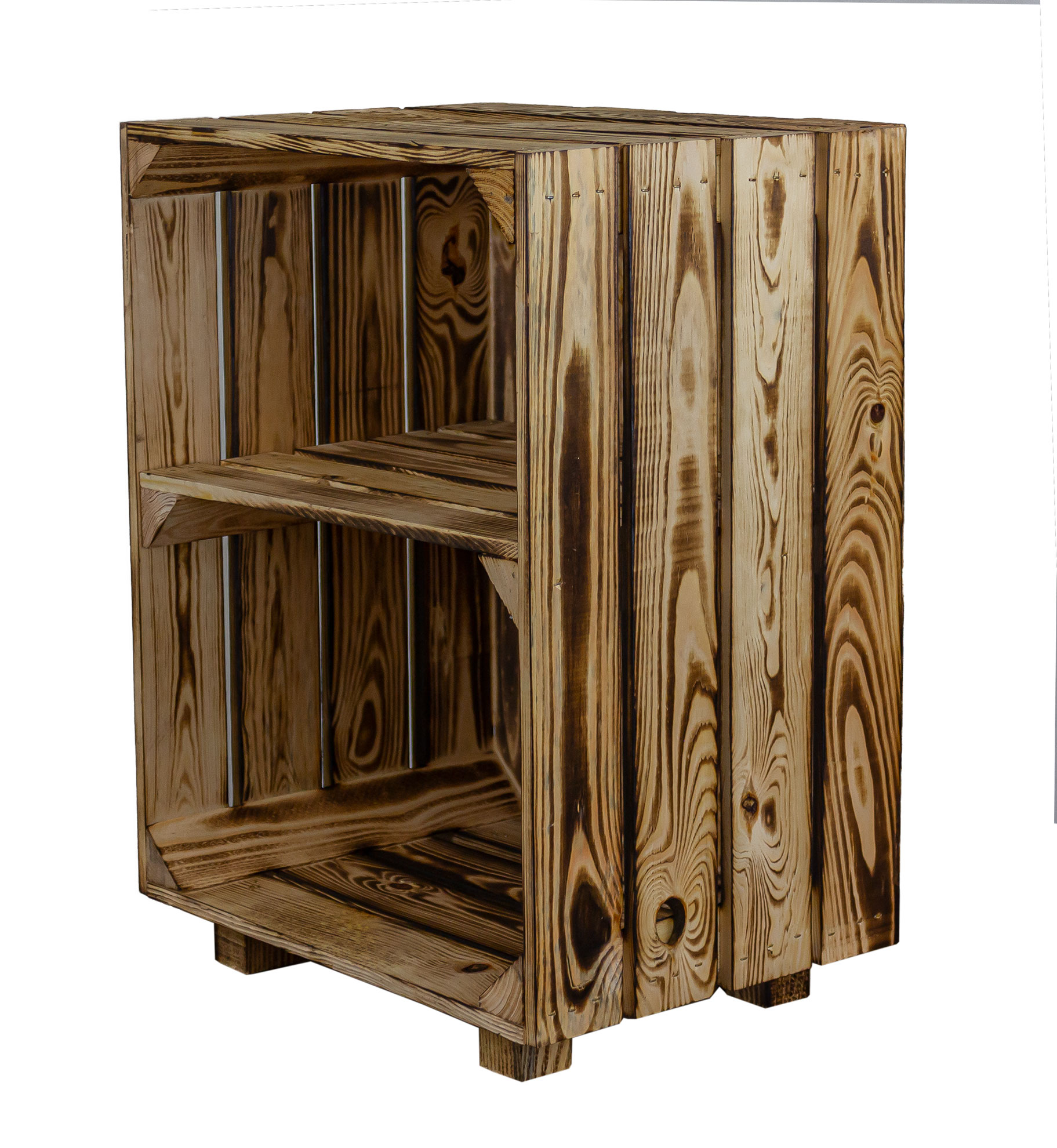 Die Kiste wurde mit einer speziellem Flammtechnik bearbeitet,deshalb kann es noch geringe Rußrückstände geben, diese am Besten mit einem feuchten Tuch entfernen.