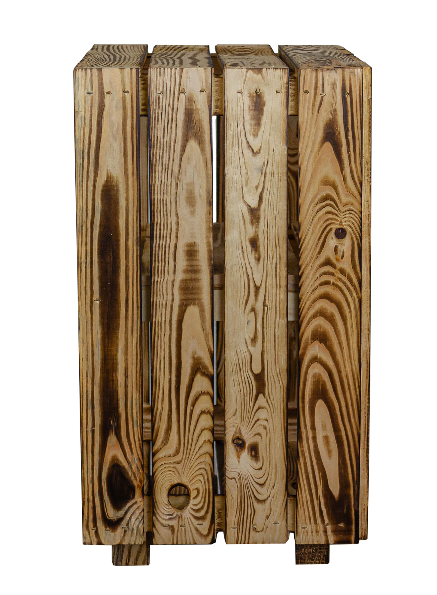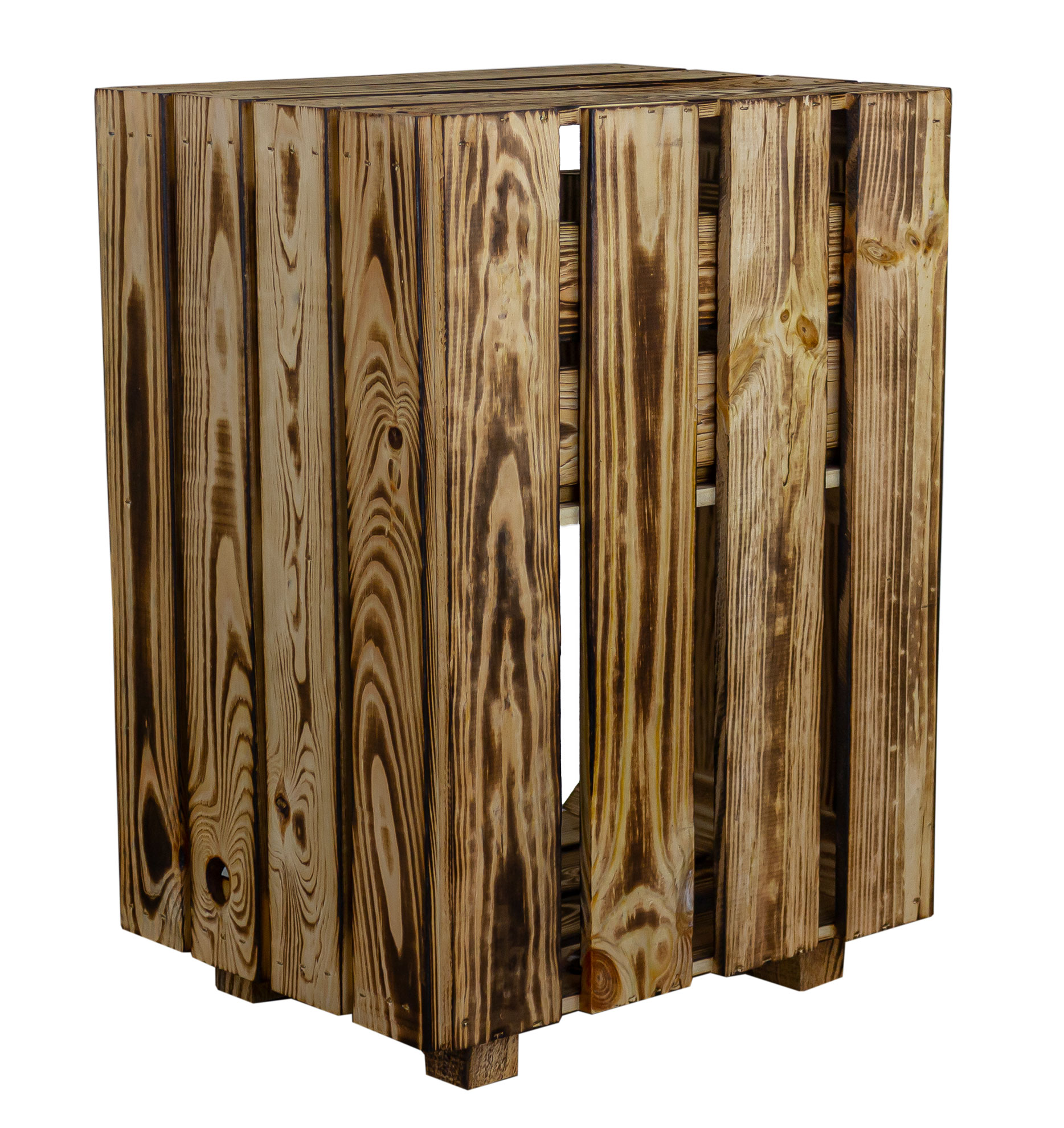 Die Kiste wurde mit einer speziellem Flammtechnik bearbeitet,deshalb kann es noch geringe Rußrückstände geben, diese am Besten mit einem feuchten Tuch entfernen.