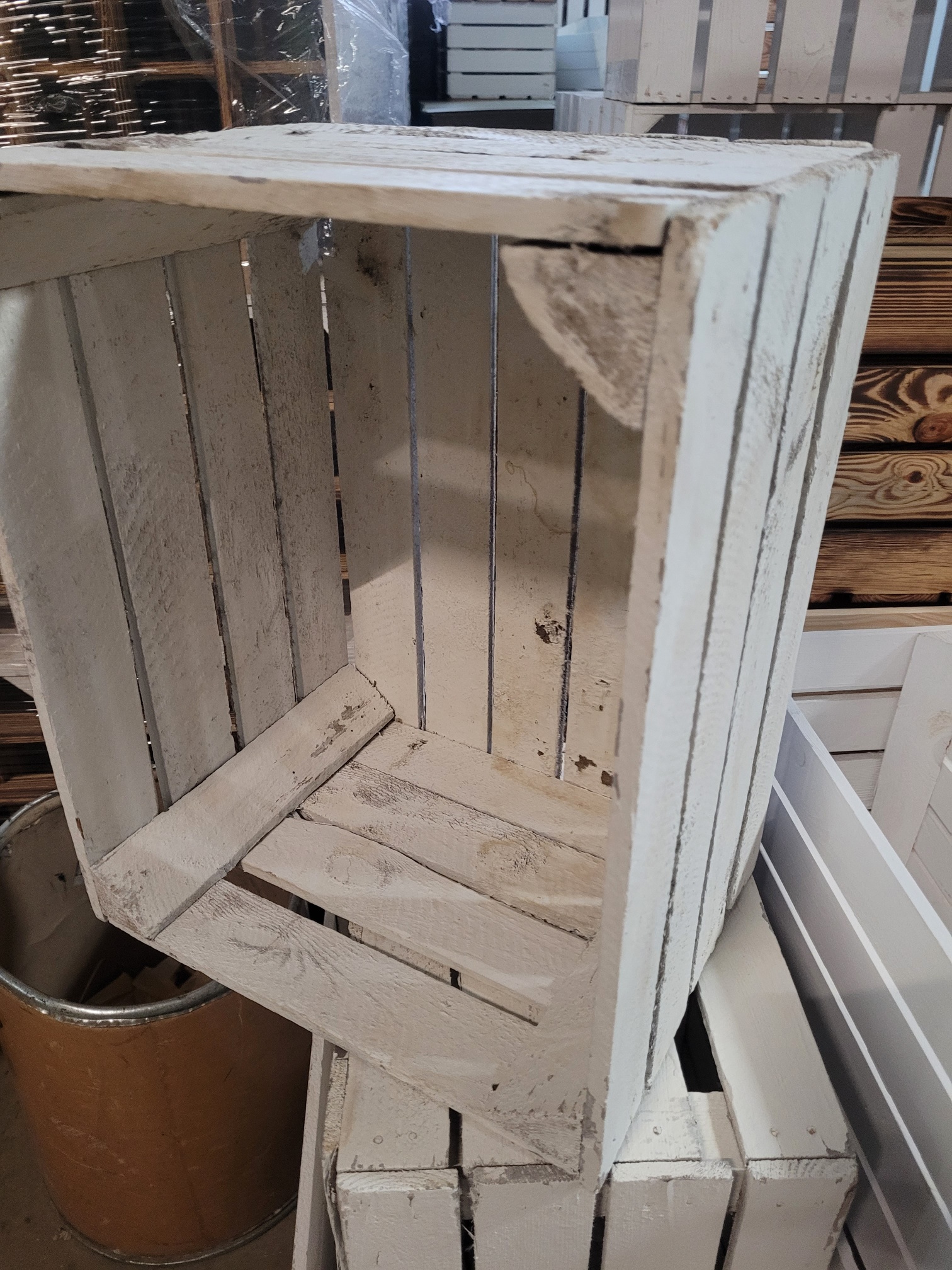 gebrauchte weiße Obstkiste als B WARE mit Mängeln!