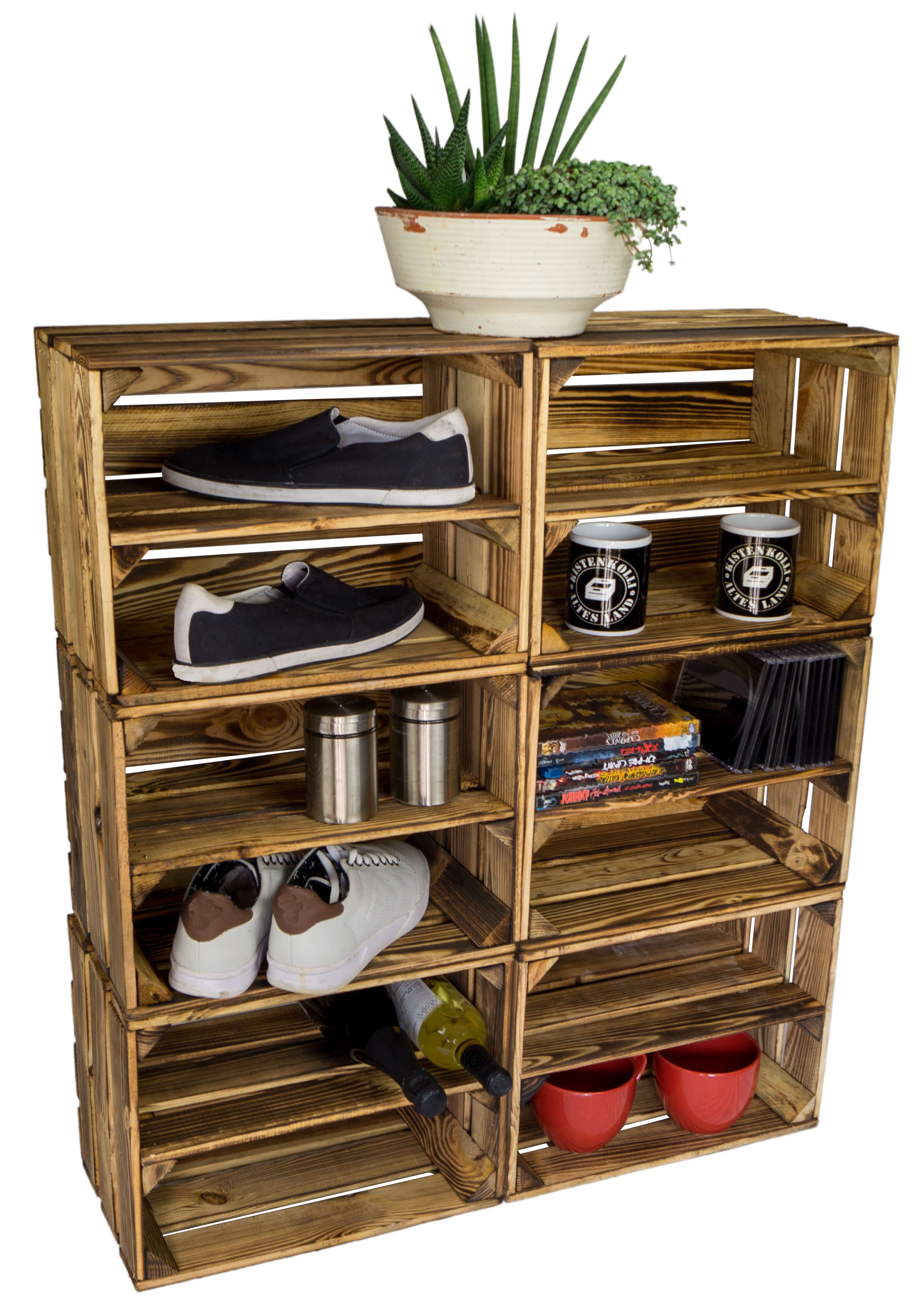 Die Obstkisten eignen sich ideal zum verschönern des Balkons, der Wohnung oder des Gartens. Diese Art von Kisten sind aufgrund Ihrer dicken Wandstärke sehr Robust und wunderbar als Tisch, Hocker, oder Beistelltisch zu werdwenden. Kisten besitzen keine Aufschriften.