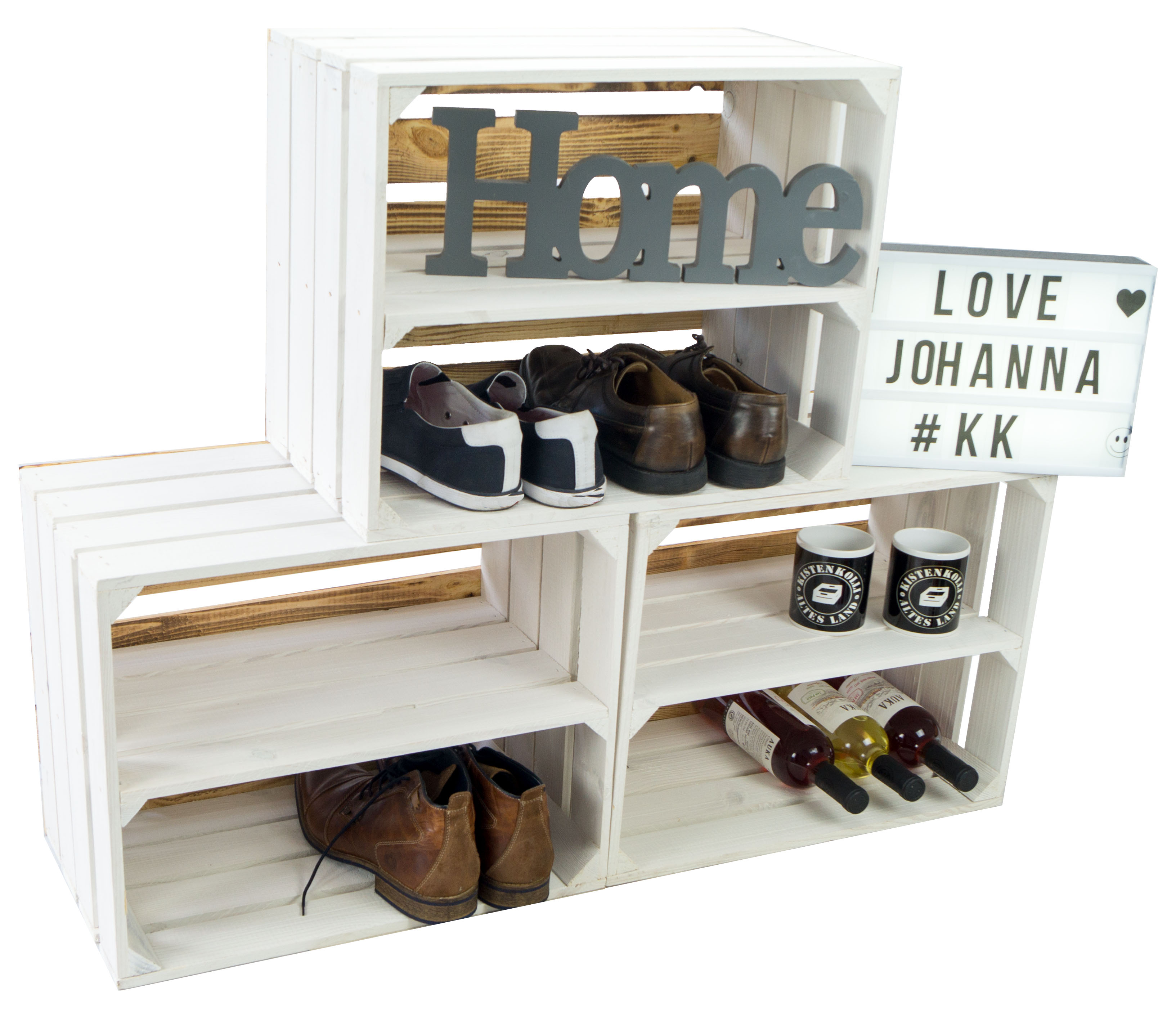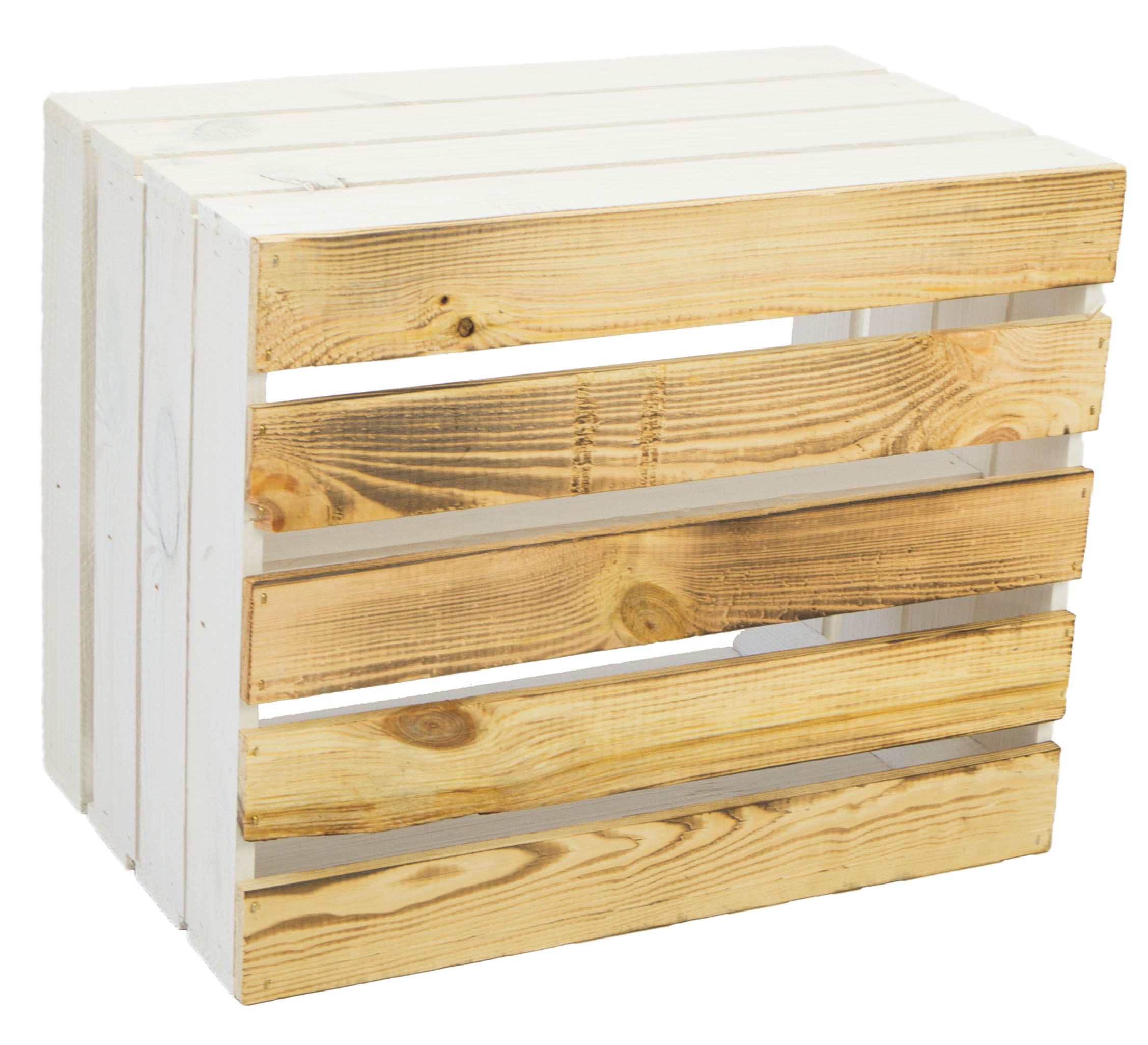 Obstkiste "Johanna" weiß mit geflammten Boden mit Mittelbrett weiß LÄNGS