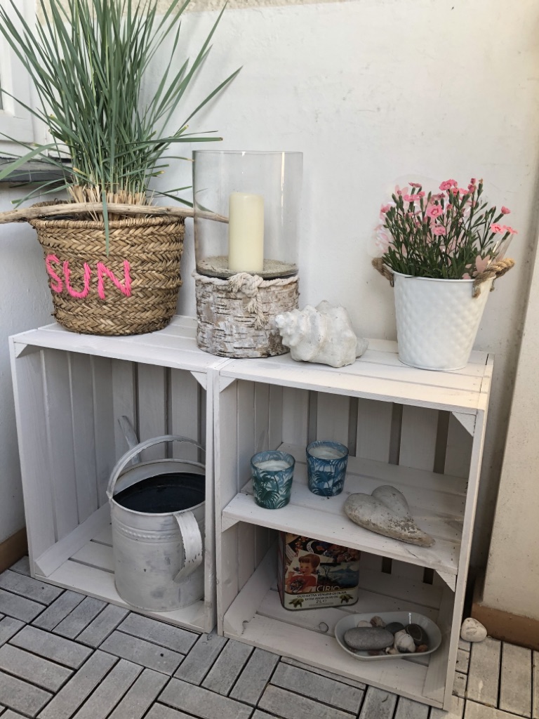 Hier wurden unsere guten gebrauchten Johanna Kisten im Shabby Vintage Style mit einer Kalkfarbe bemalt.