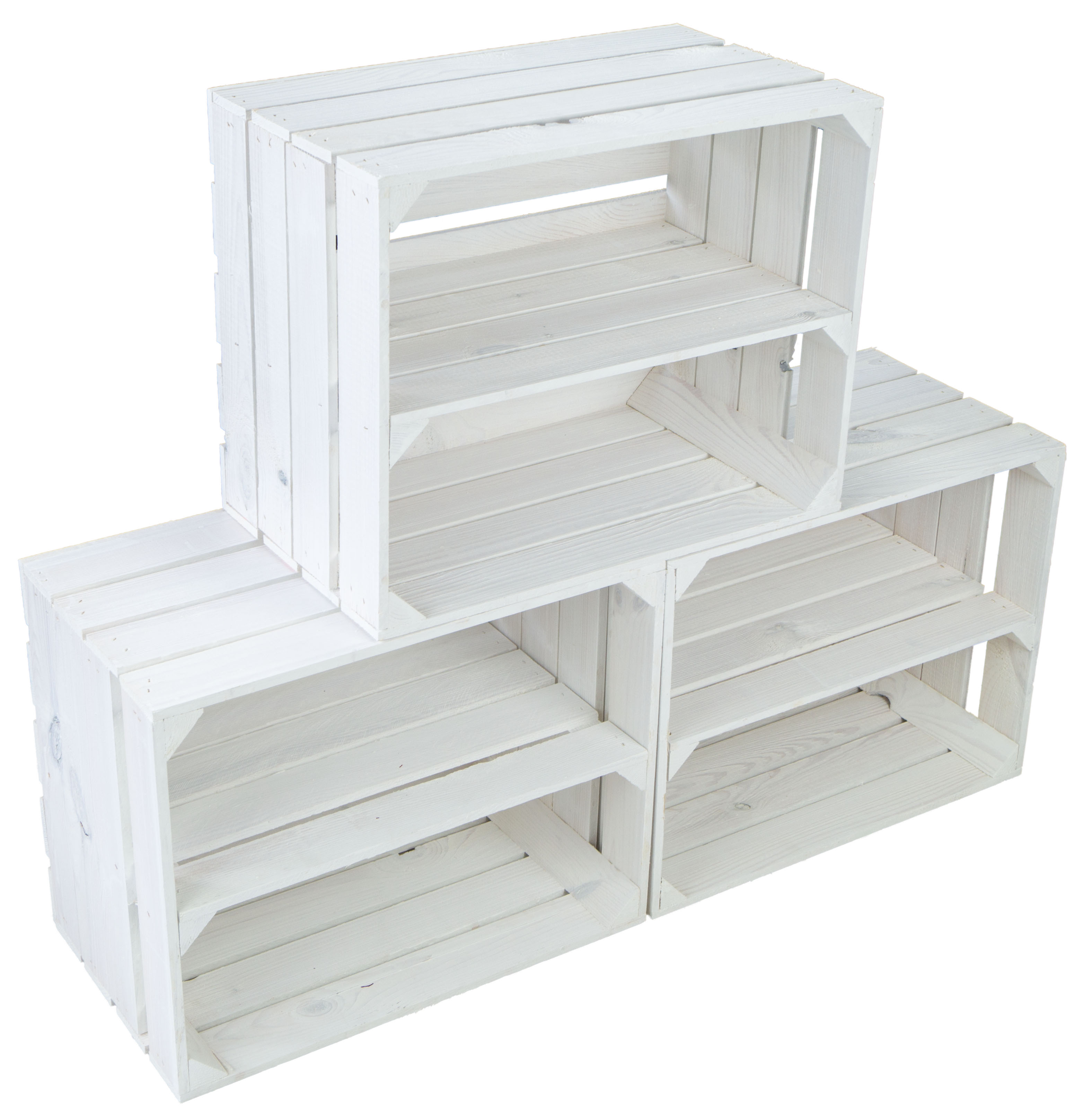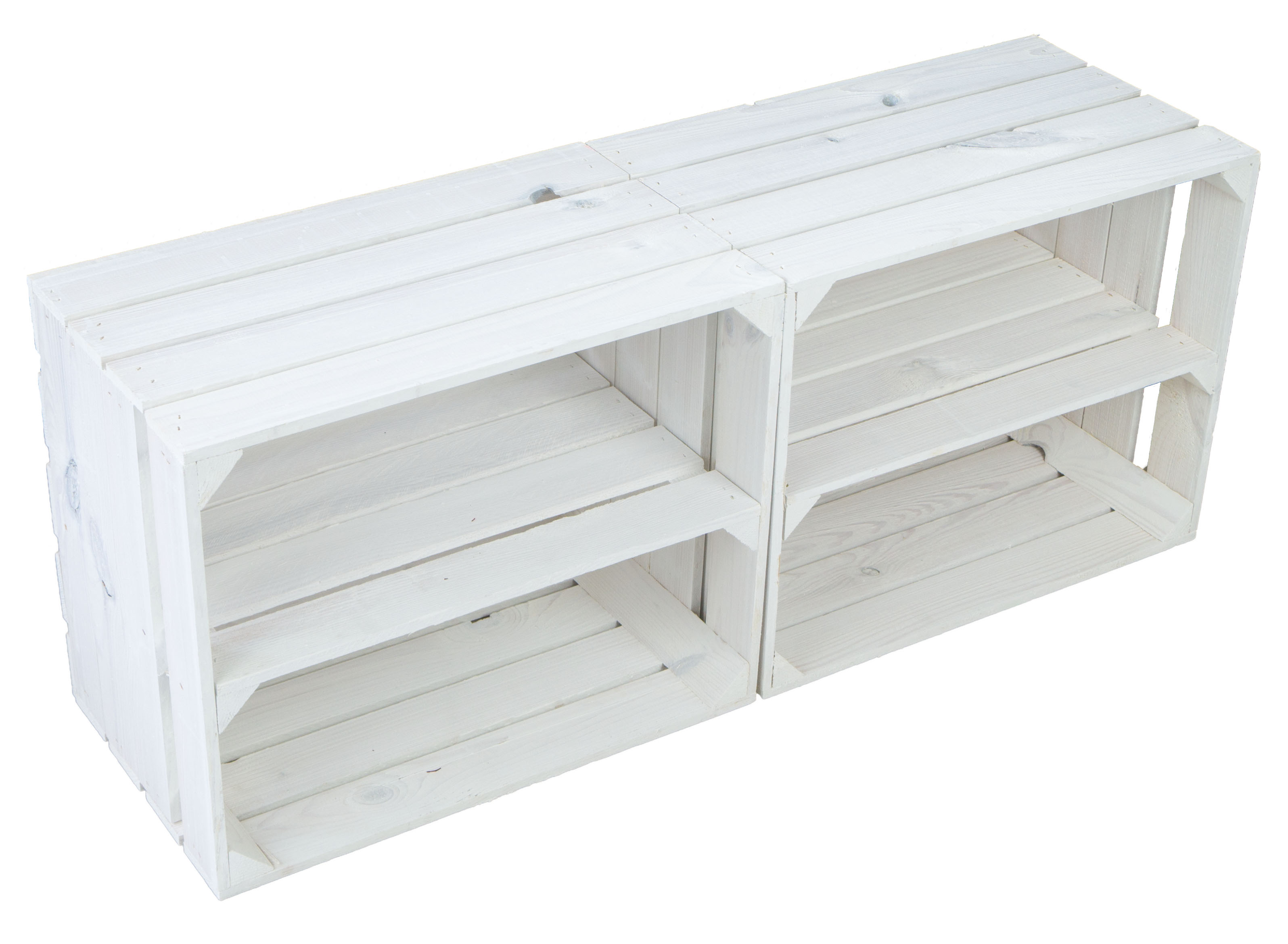 Die Kisten sind NEU und wurden weiß lackiert und mit einem Mittelbrett (längsseite) versehen.