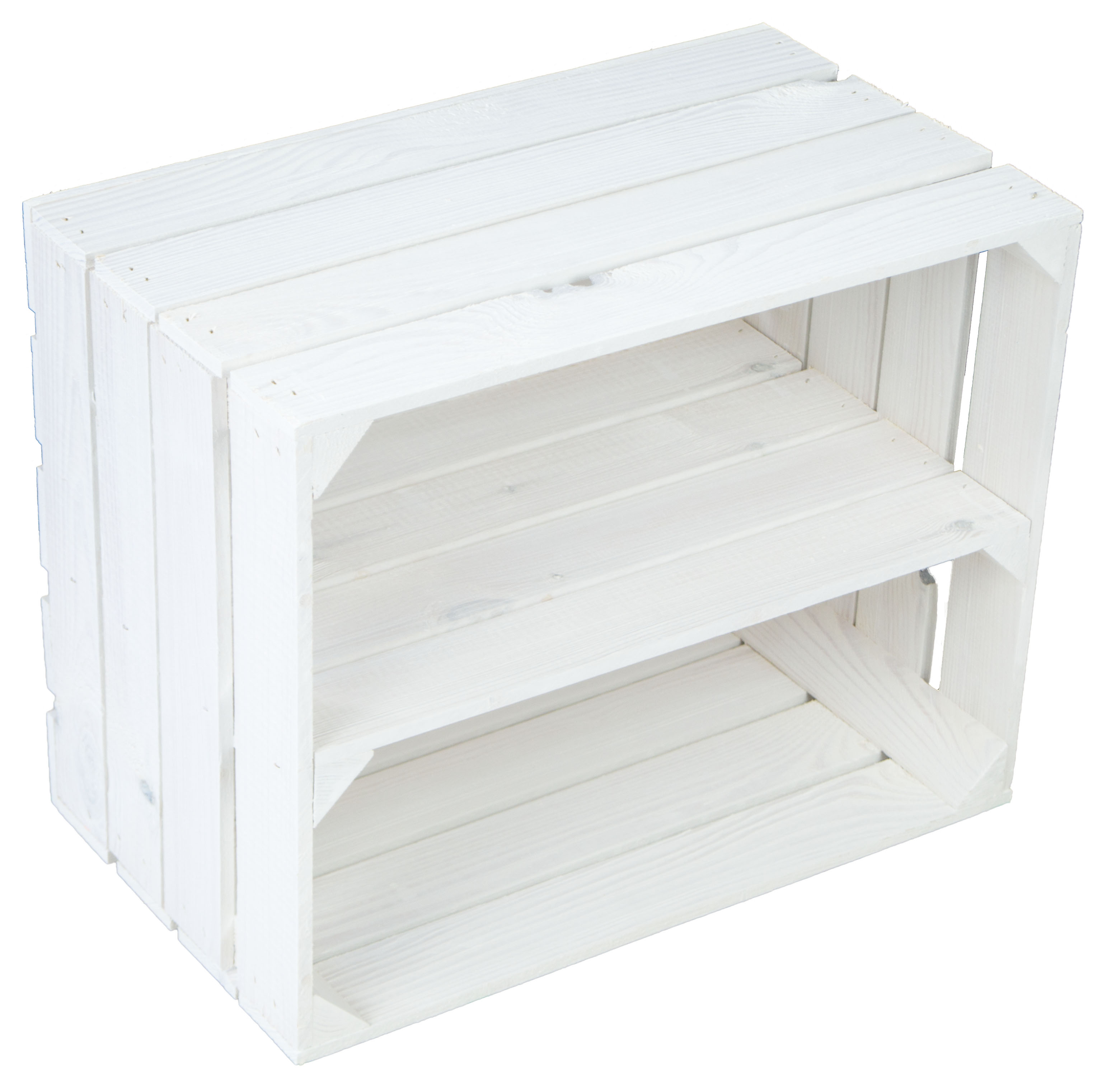 Neue weiße Obstkiste mit Mittelbrett "LÄNGS"
