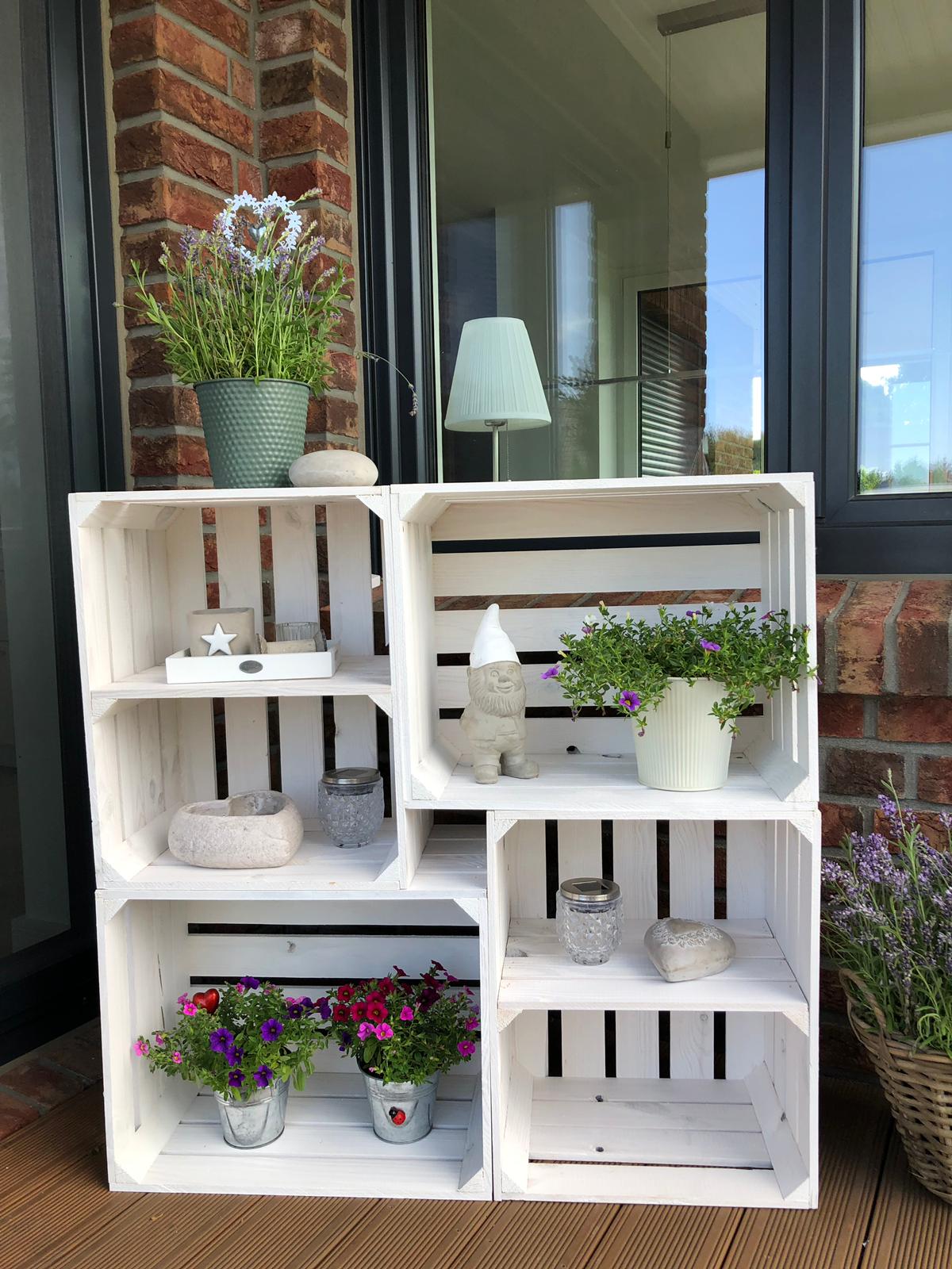 Die Kisten sind NEU und wurden weiß lackiert und mit einem Mittelbrett (breite Seite) versehen.