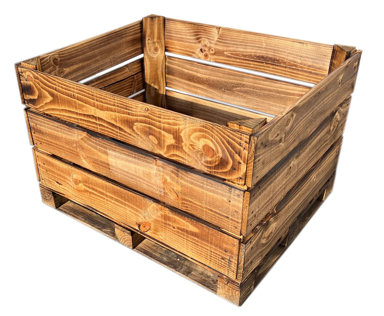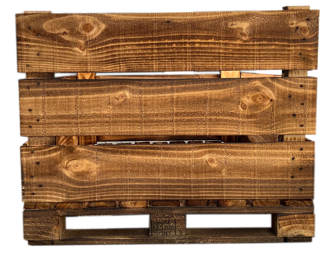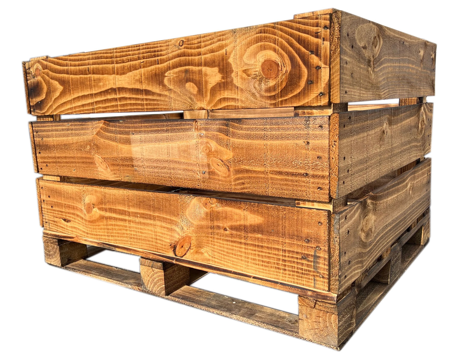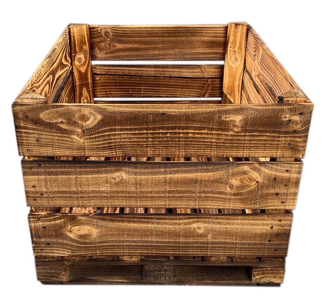 Maße 120cmL x 100cmB x 81cmH (geflammte Kisten haben Russrückstände, bitte diesen vorab mit einem feuchten Lappen entfernen)