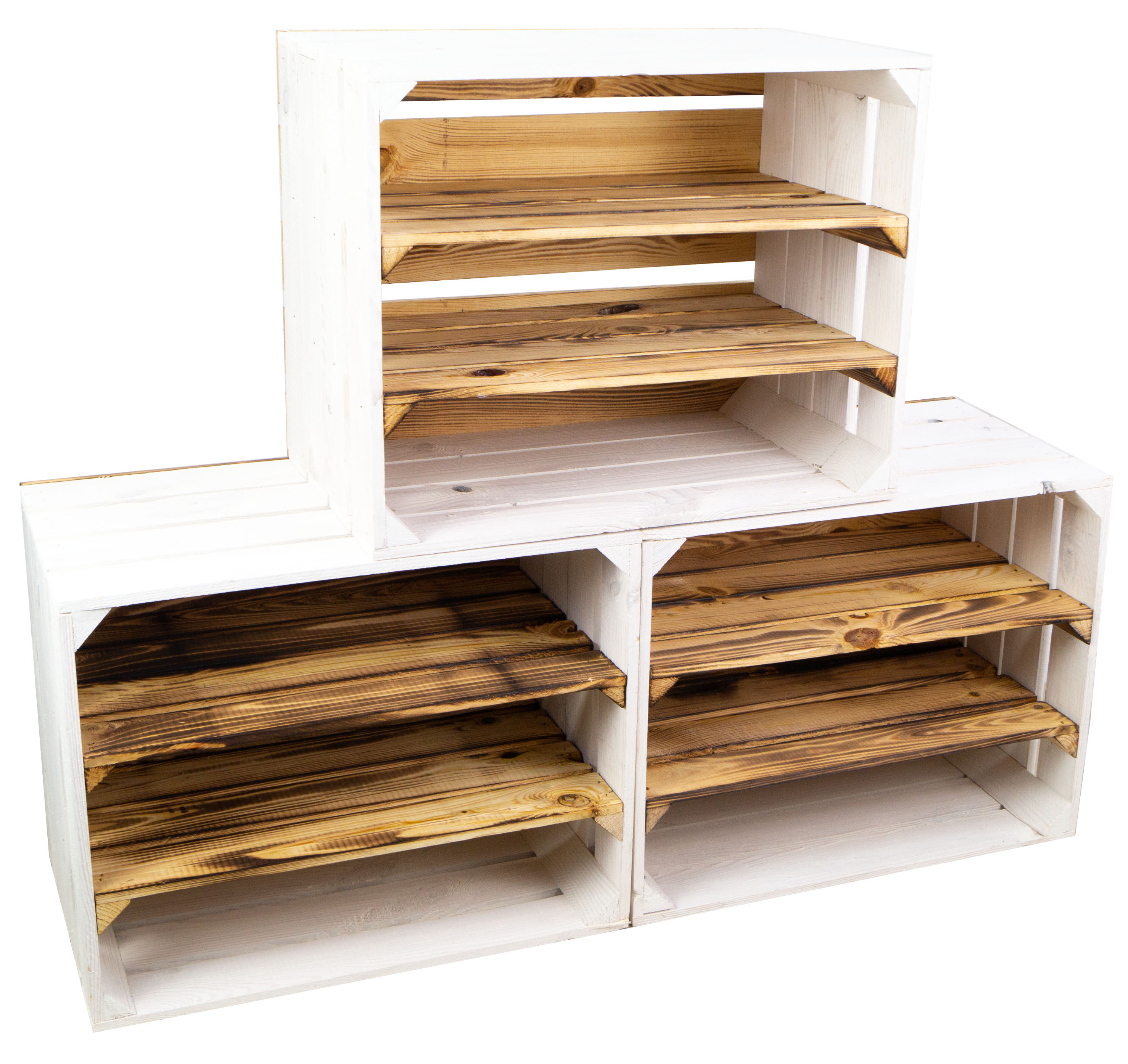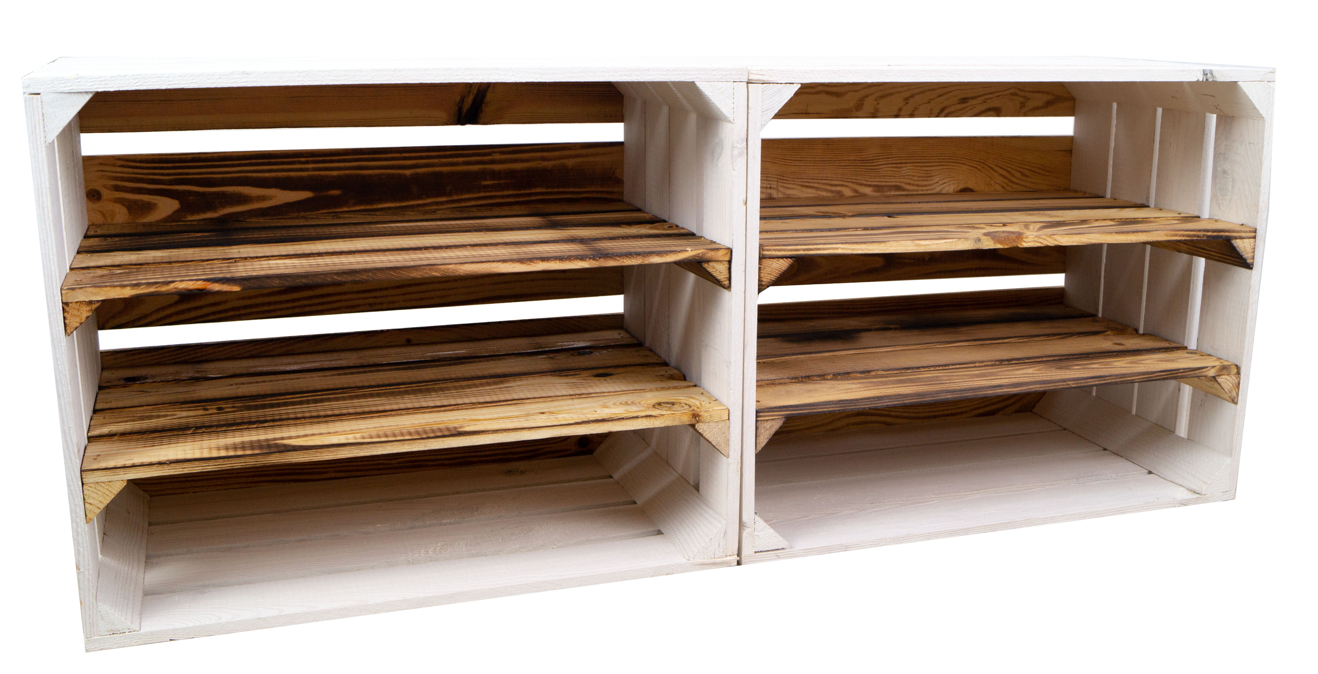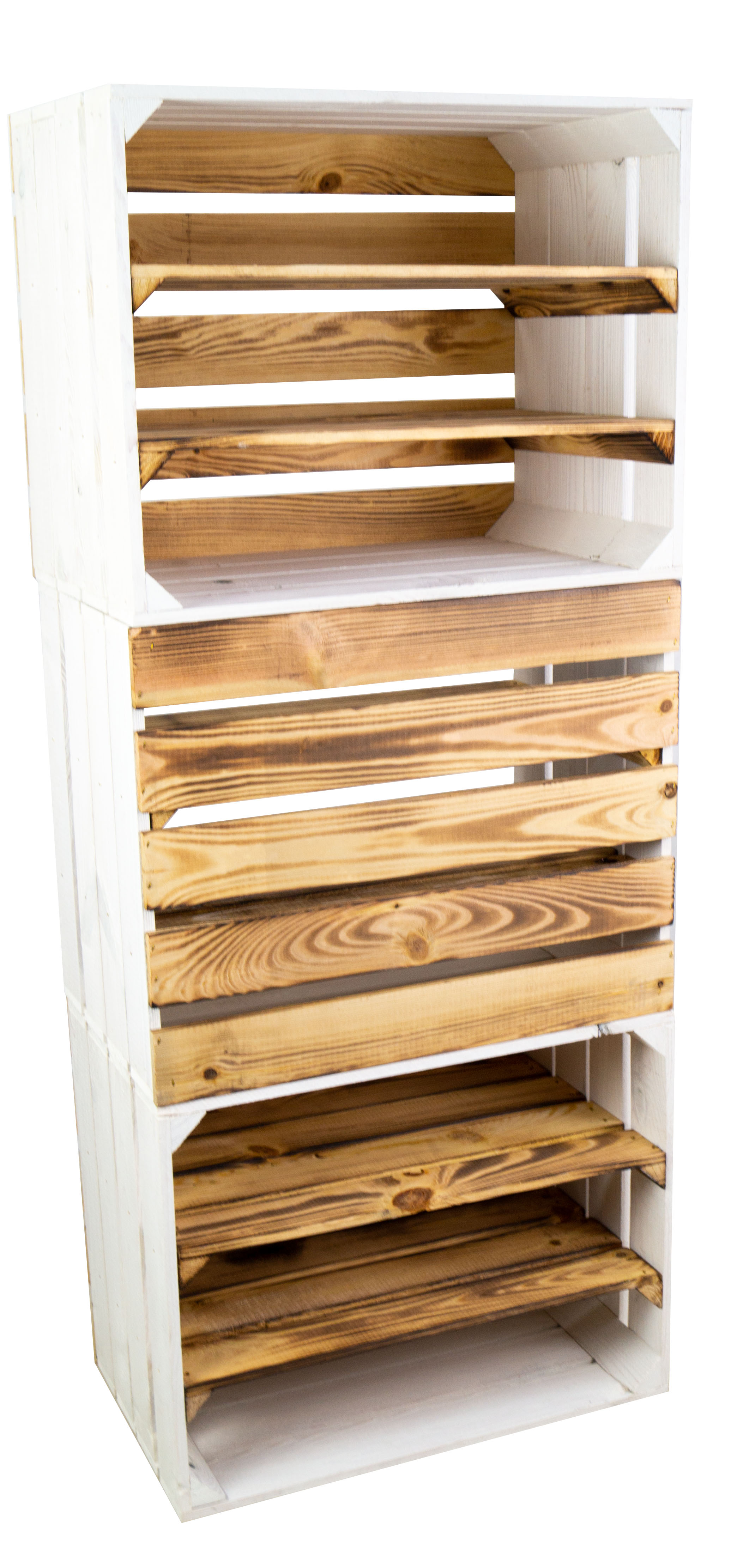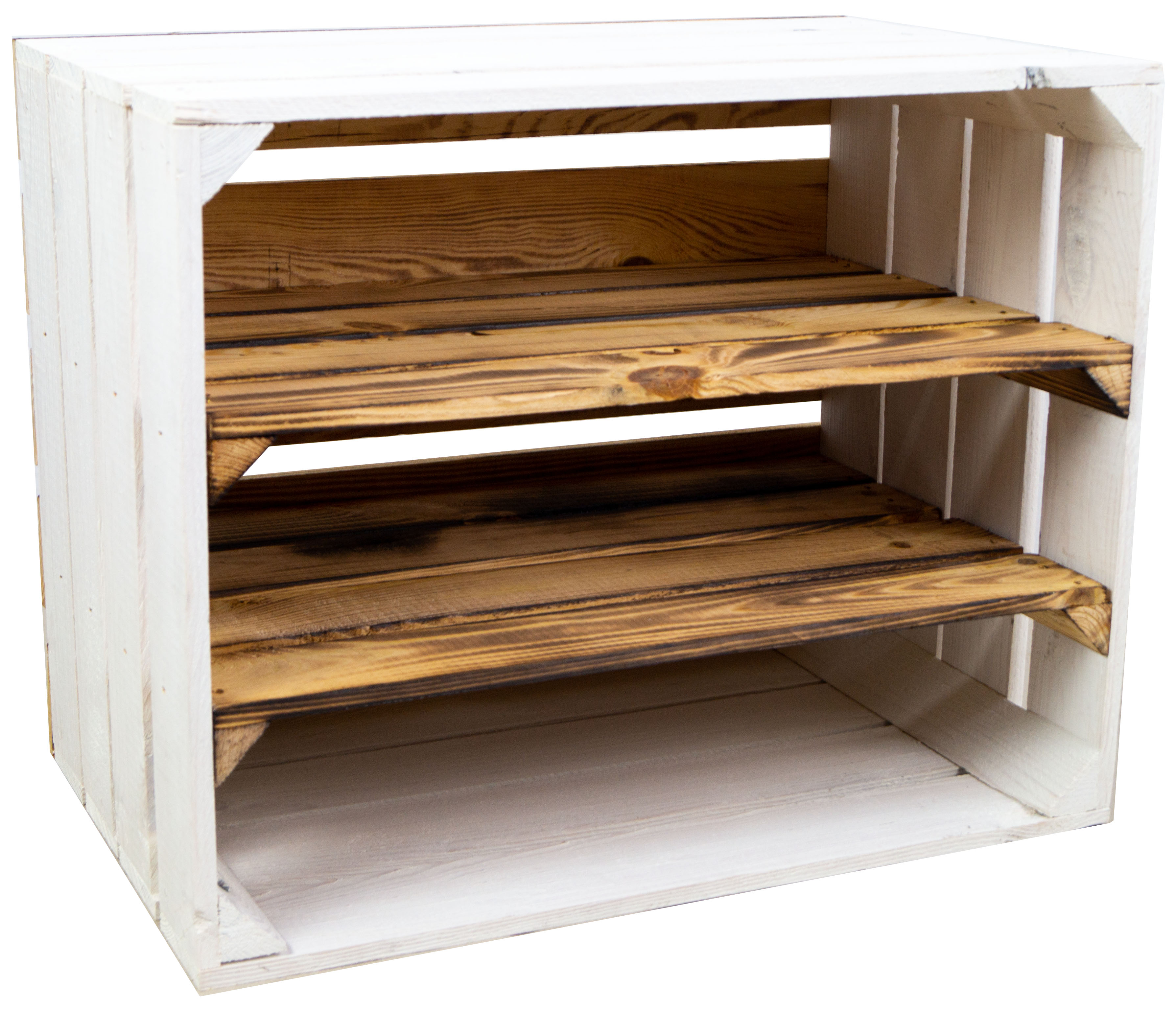 weisse Obstkisten Paula mit zwei geflammten Einlegeböden inkl. Rückseite