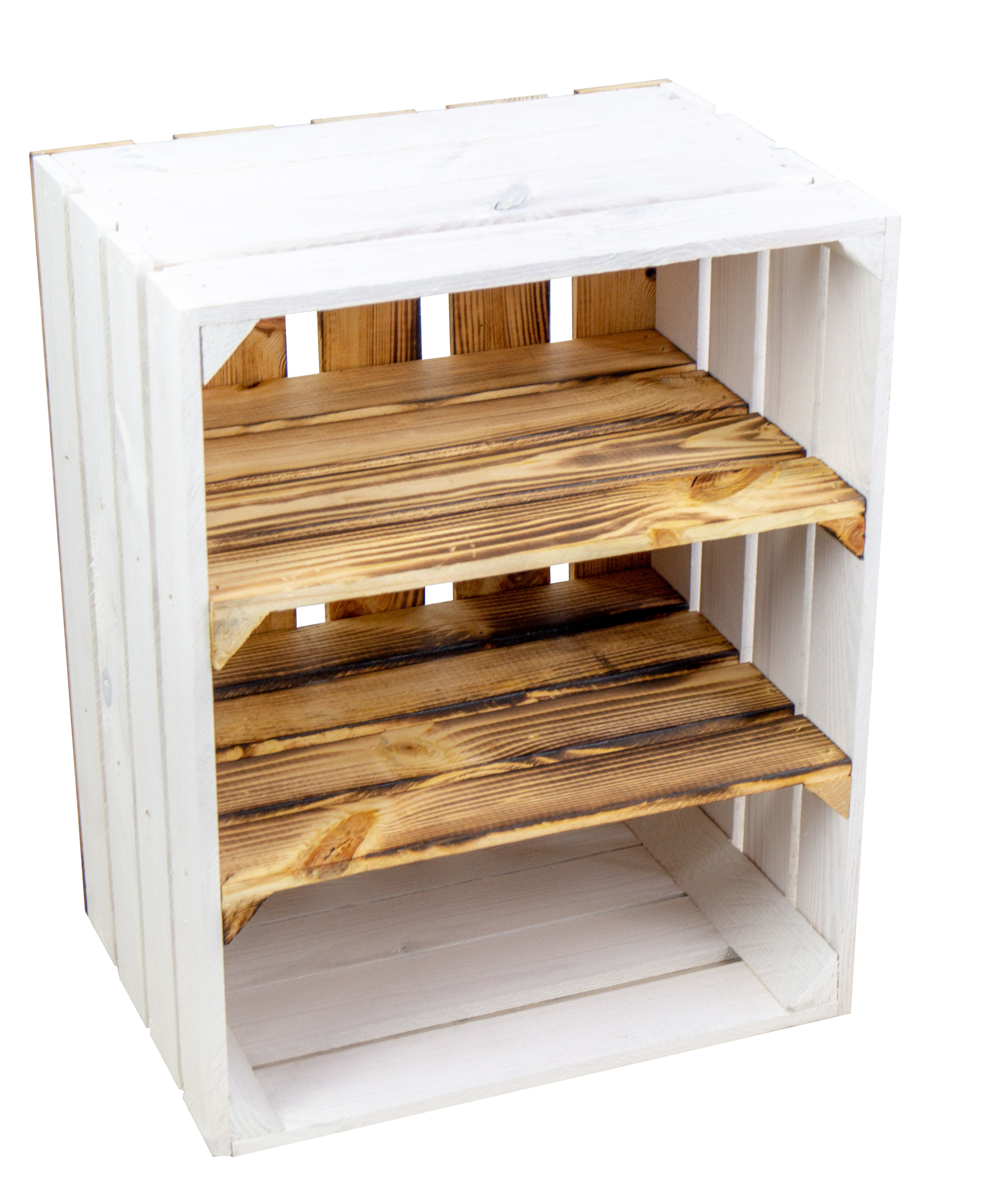 weisse Obstkisten Paula mit zwei geflammten Einlegeböden Quer inkl. Rückseite