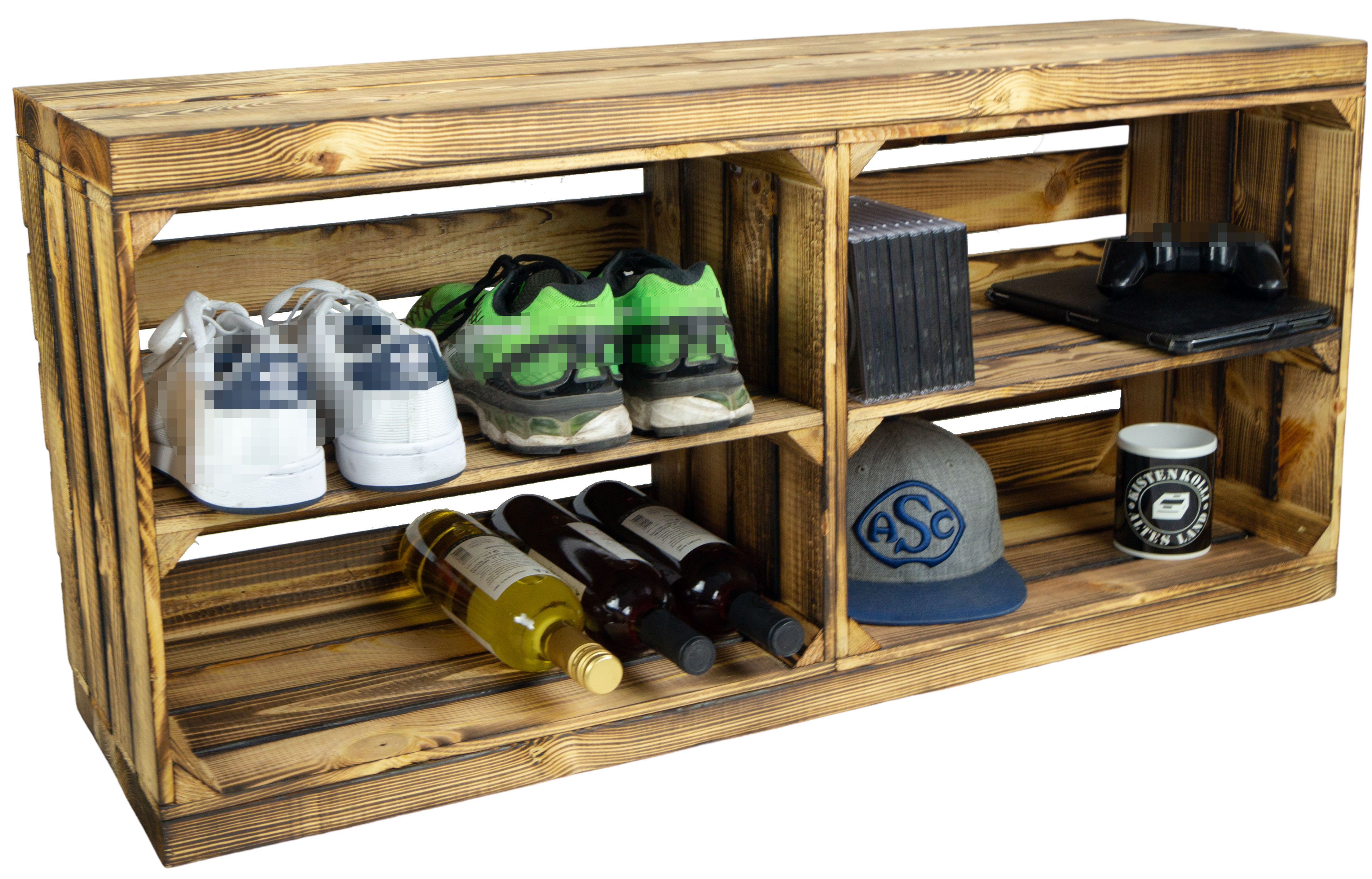 • es können manchmal Unregelmäßigkeiten in der Bemalung auftreten, bitte haben Sie dahingehend Verständnis. Es handelt sich um Obstkisten, die umfunktioniert wurden und somit keine perfekten Furniermöbelstücke sind. Wir verwenden ausschließlich Vollholz, welches natürlich auch mal kleinere Makel haben könnte, demnach gehören Astlöcher auch dazu.