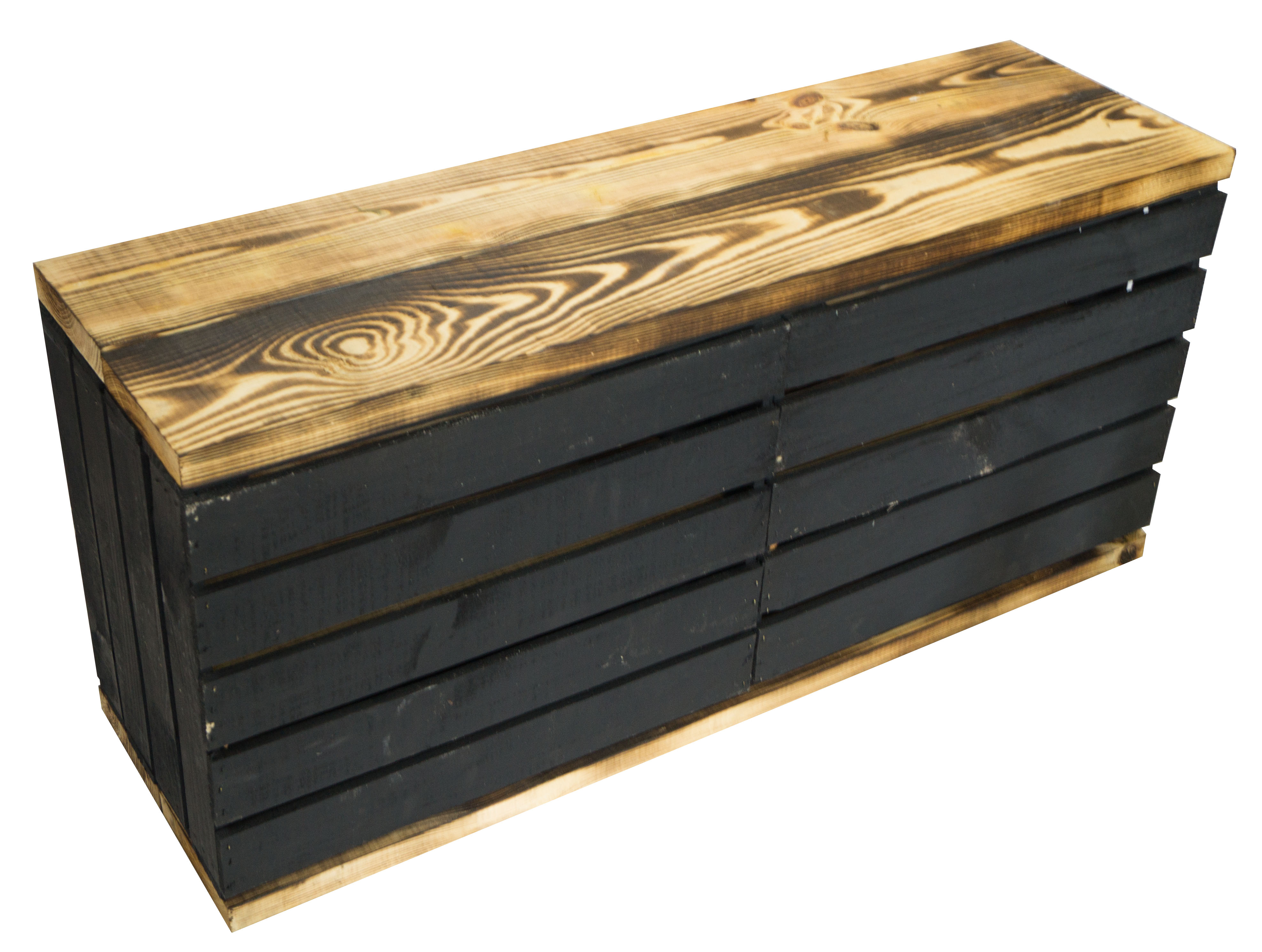 neue & gehobelte rustikale Sitzbank schwarz mit geflammten Mittelbrettern und passenden Holzplanken