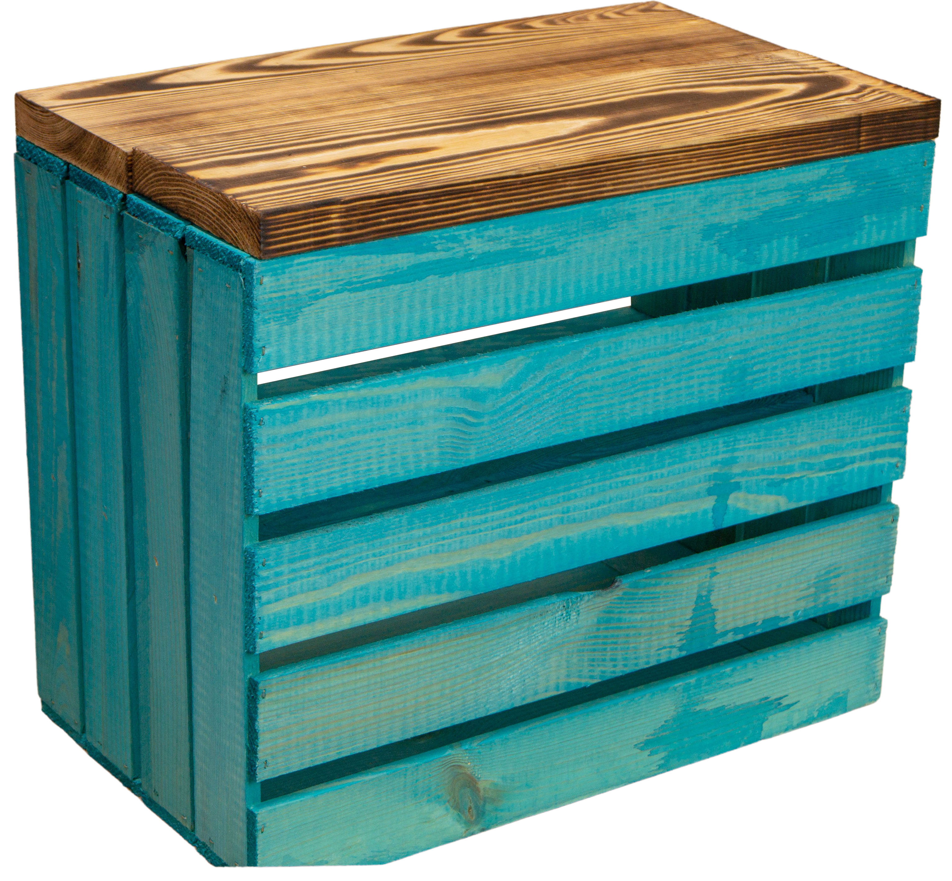 Sitzkiste Johanna - Türkis längs - mit Planke
