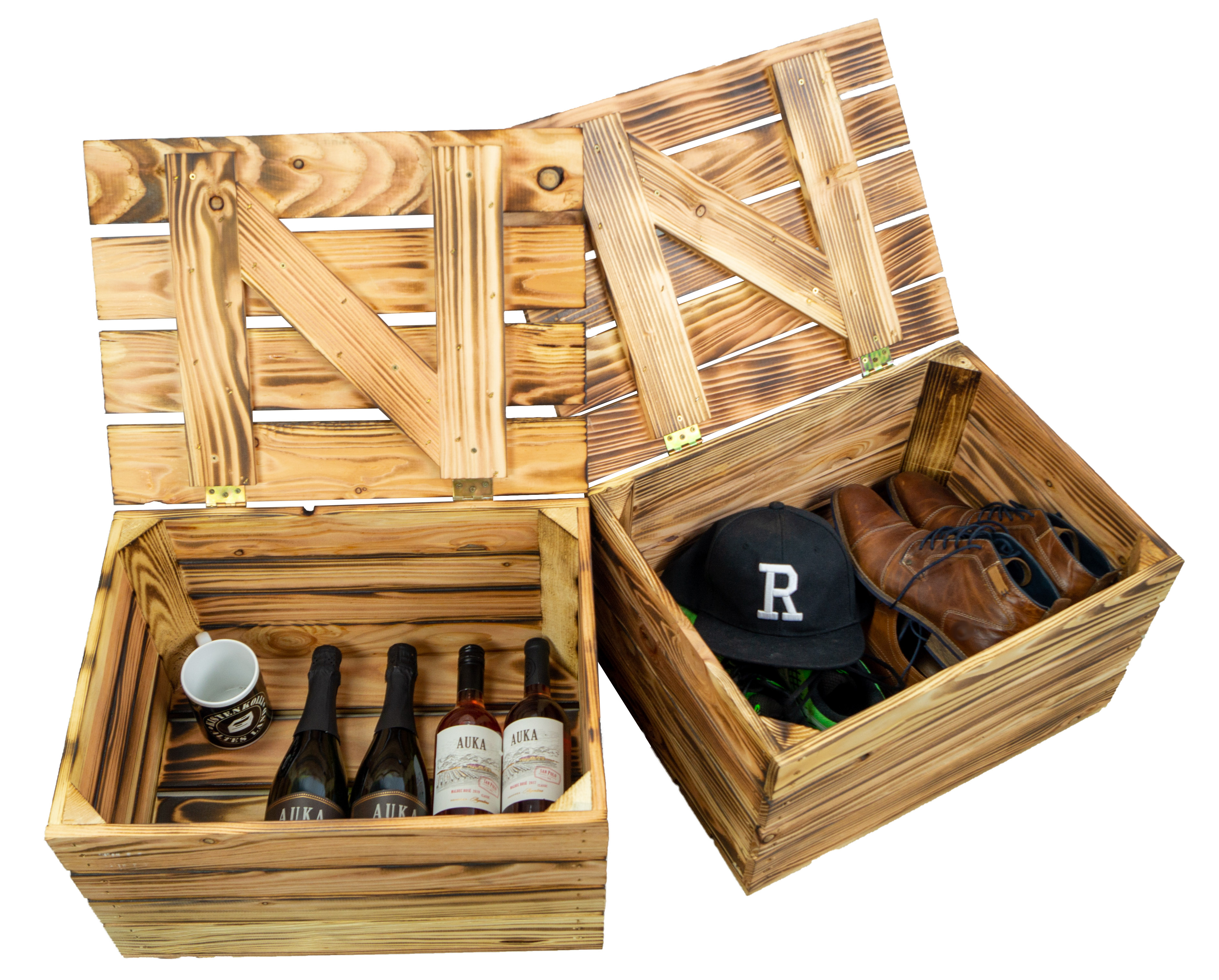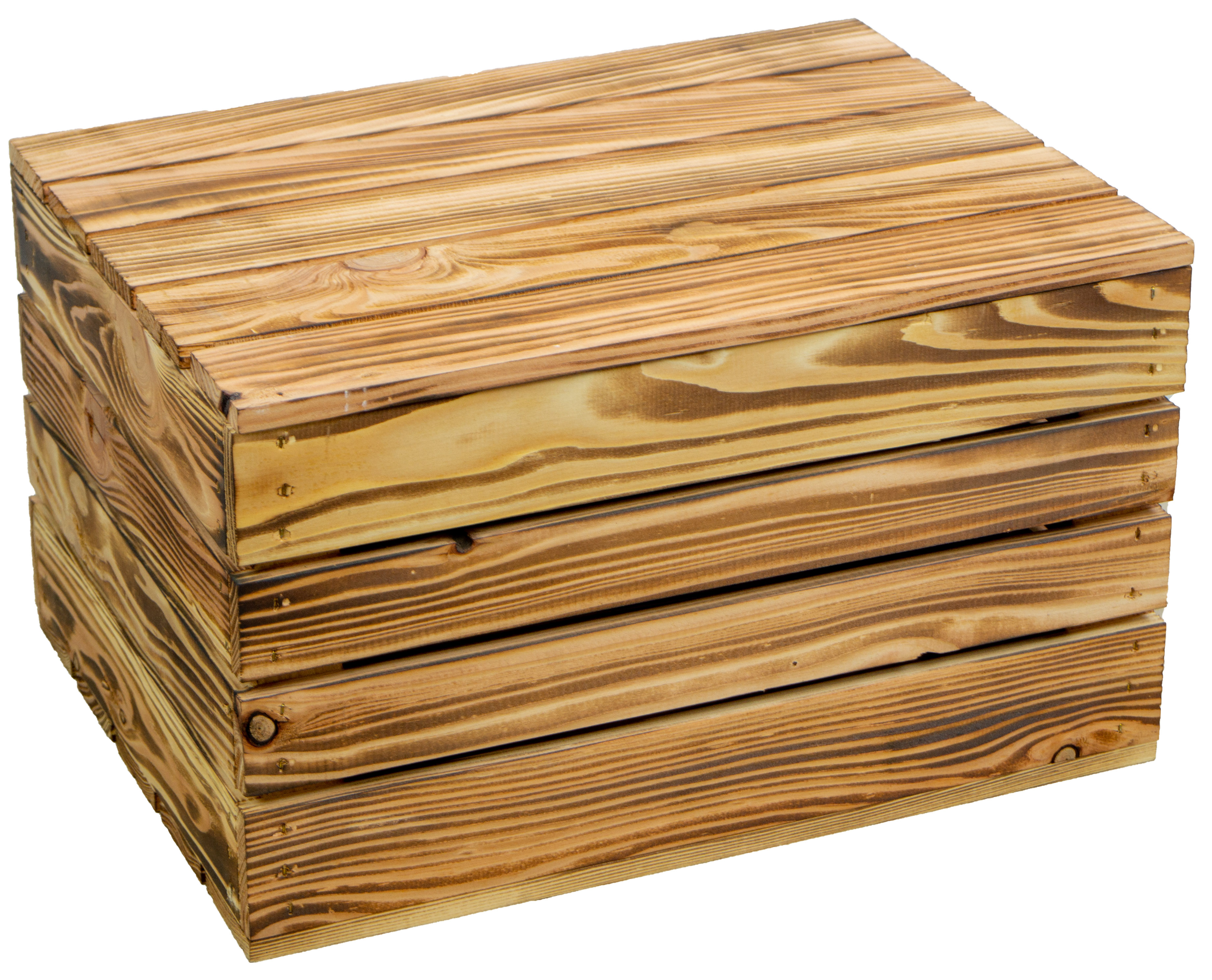 Achtung: Geflammte Kisten: Durch das abflammen der Kiste ensteht Russ der natürlich vor Gebrauch entfernt werden sollte.