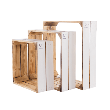 Die Wandregal Kisten mit dem coolen Design bestehen aus massivem Kiefer-Holz.