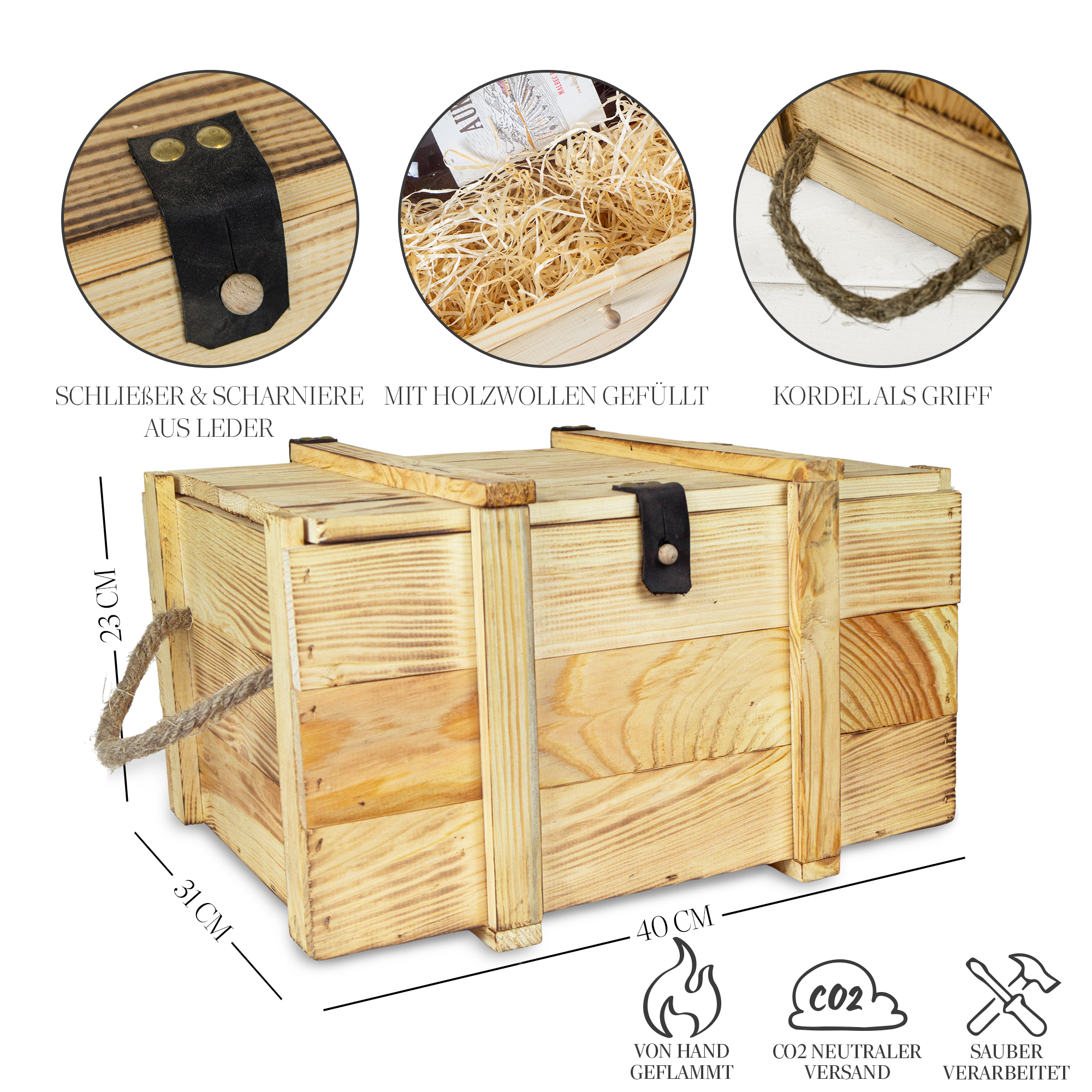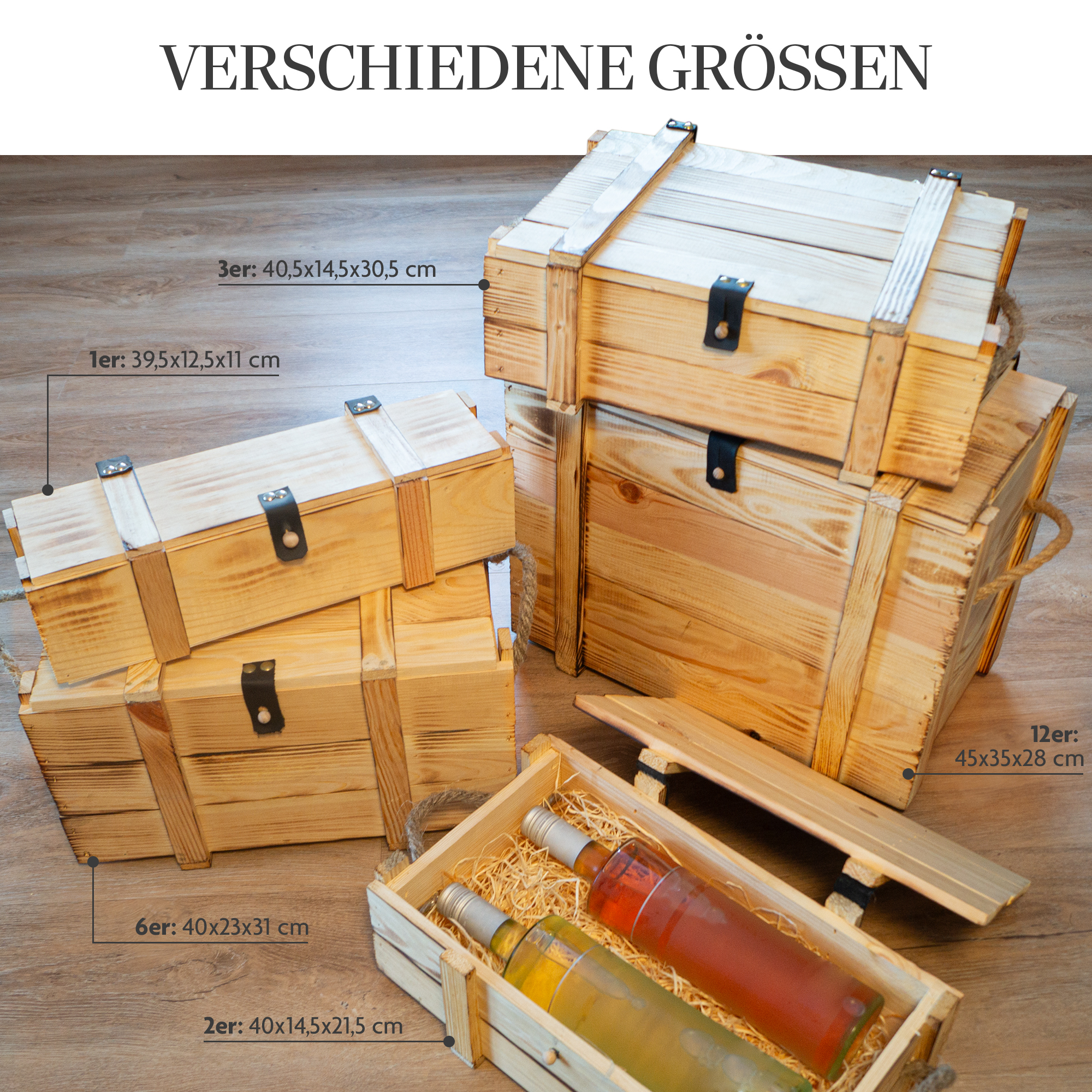 Weinbox 6er geflammt inkl. Holzwolle Weinkiste Geschenkekiste Holzkiste Aufbewahrungskiste