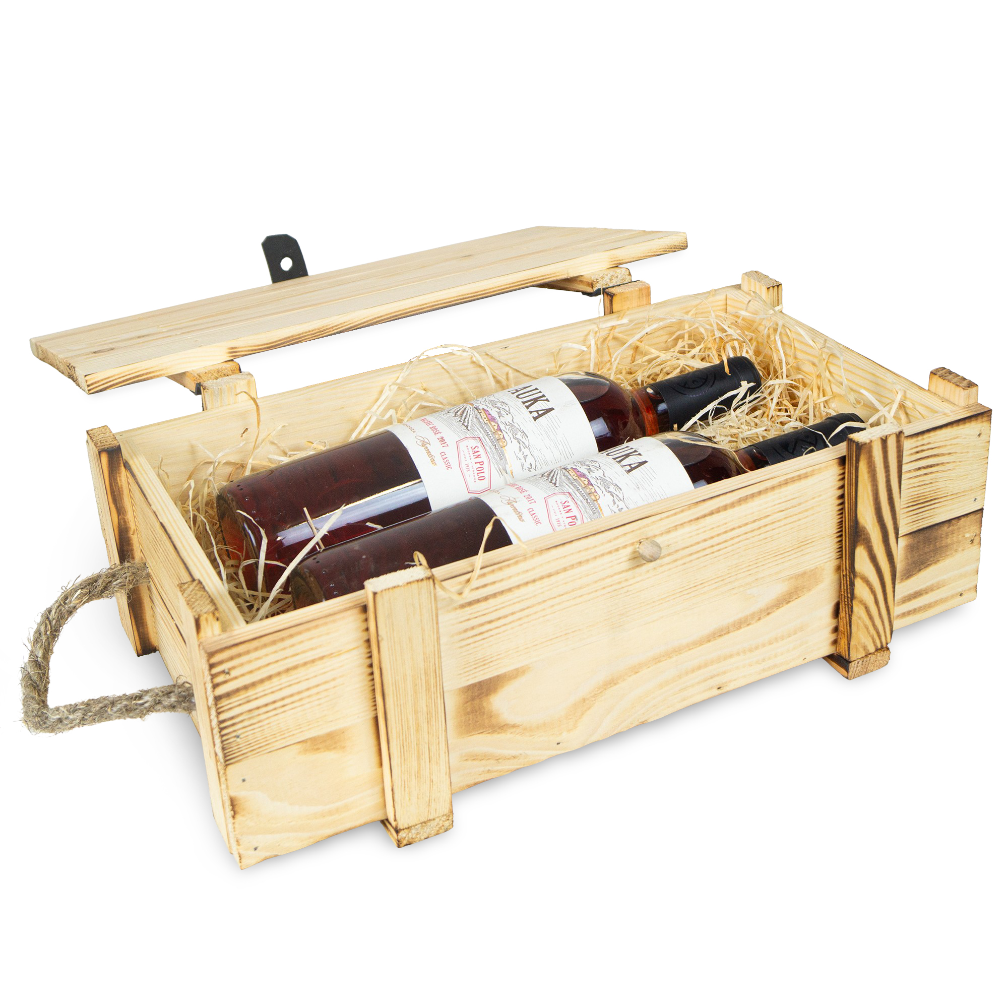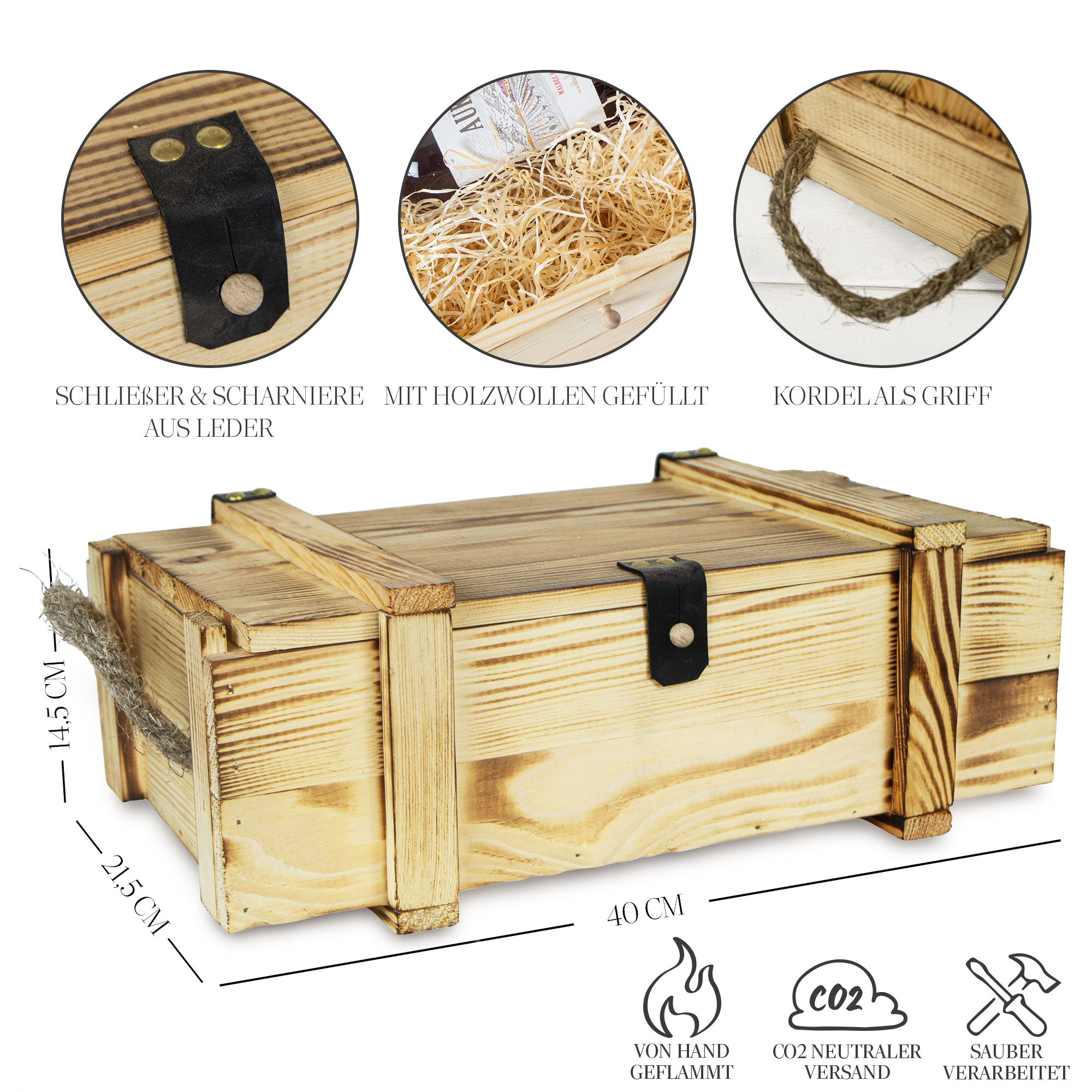 Weinkisten 2er geflammt inkl. Holzwolle