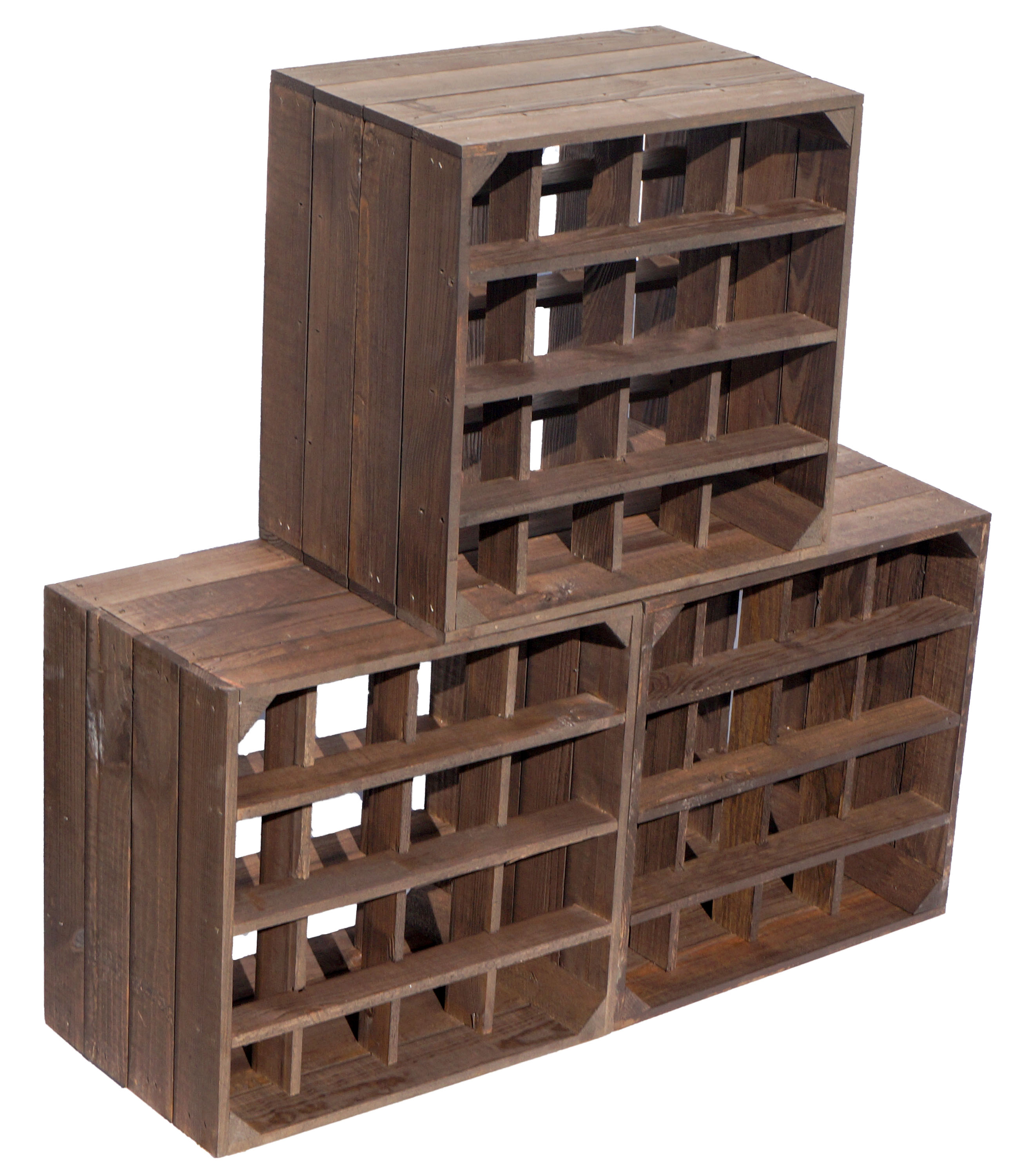 Die Kiste sieht wirklich toll aus. Leider passen jedoch nur schlanke lange Flaschen hinein: Literflaschen sind zu dick für die Fächer, kurze Flaschen fallen durch (sofern die Öffnung des Regals nach vorne zeigt), weil die Fachböden/-wände nicht durchgängig sind. Ein entsprechender Hinweis bei der Produktbeschreibung wäre hilfreich.