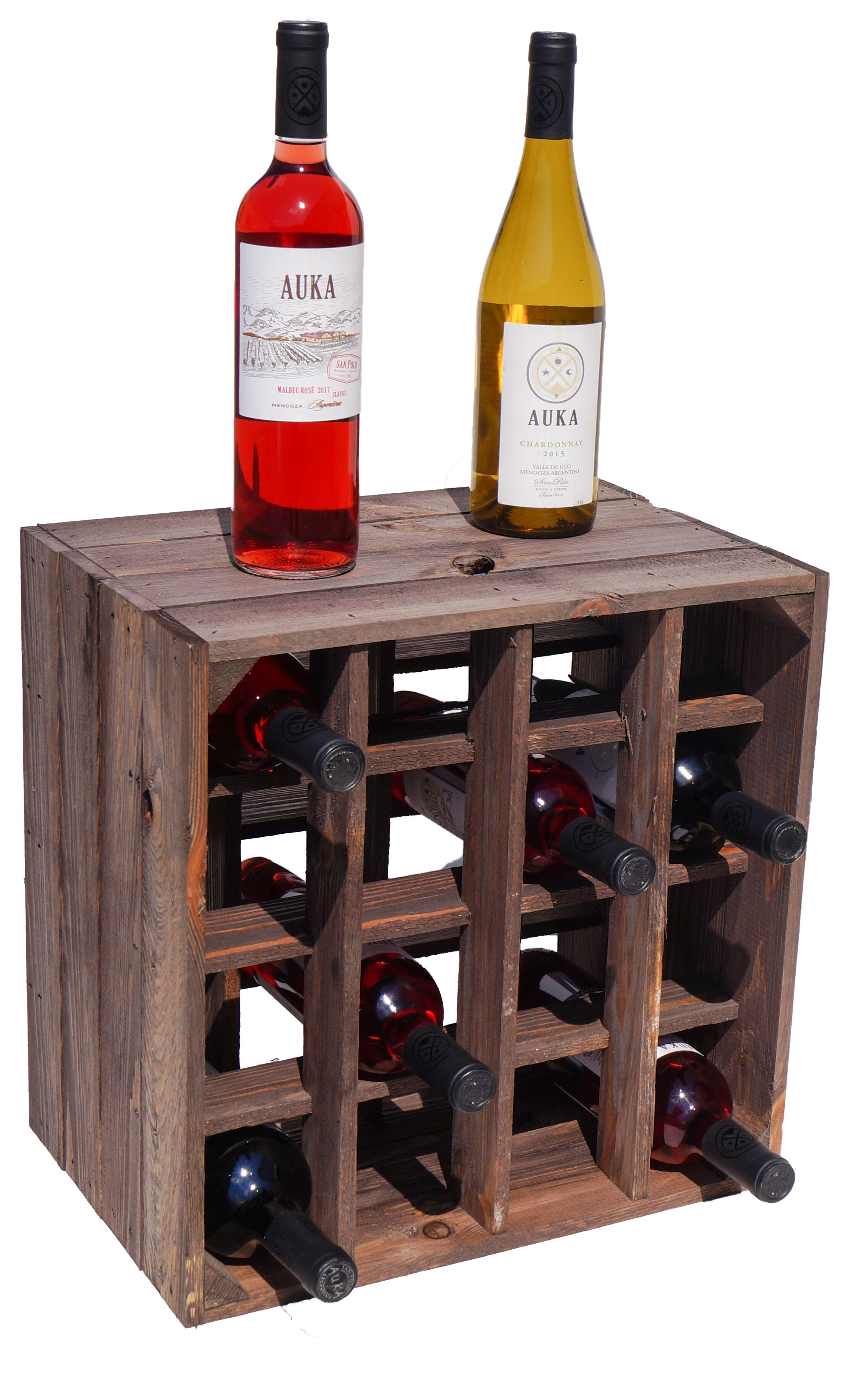 Dieses schöne neue geflammte Weinregal hat für mehrere (16 Einlagefächer) Flaschen Platz.